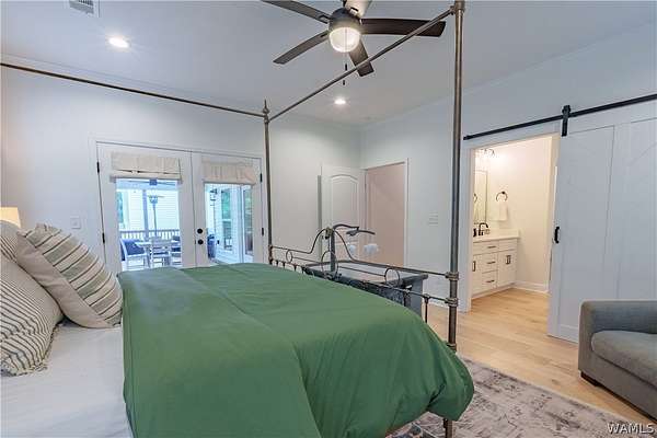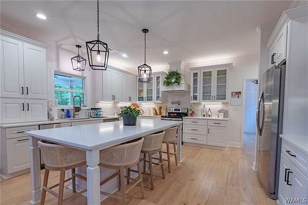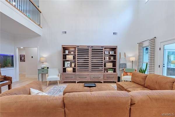 Having the best of both worlds, this modern farmhouse on 2.23 private acres offers lake living with no HOA! Featuring a white board-and-batten exterior with cedar accents, the home boasts an open floor plan, soaring ceilings, and a chef's kitchen with quartz countertops, glass-front cabinets, and stainless appliances. Enjoy spa-like baths, a custom laundry room, and a unique built-in aquarium. Outdoor spaces include a covered front porch and a large back deck overlooking wooded privacy. Convenient to Pier 43 Marina, Southern Ale House Dockside, and more-this is your perfect blend of freedom and comfort!