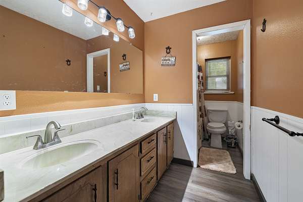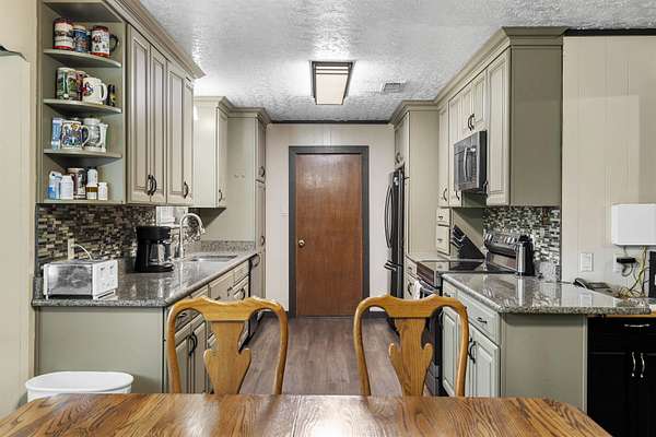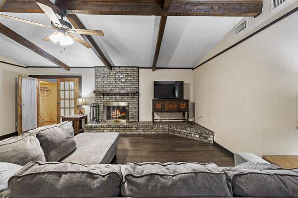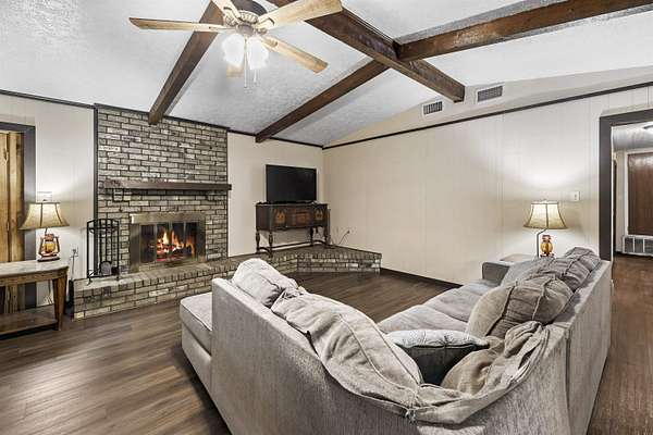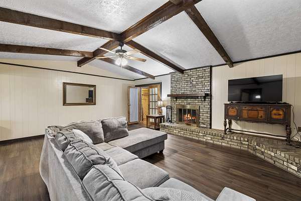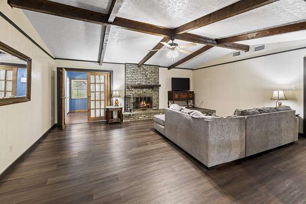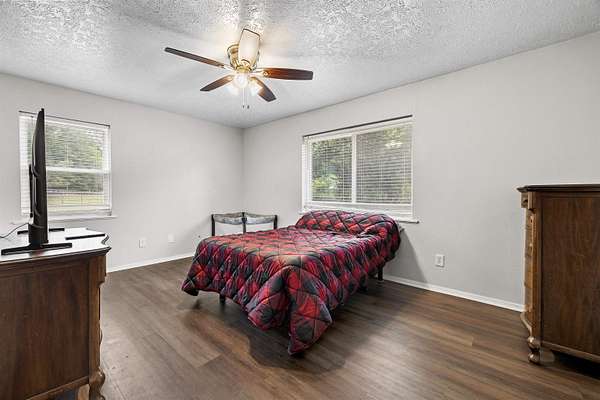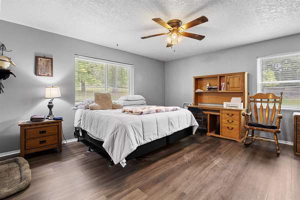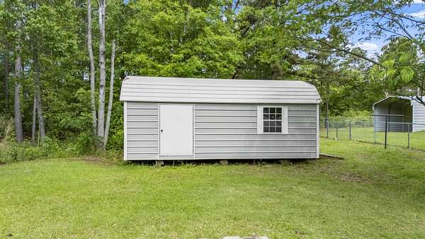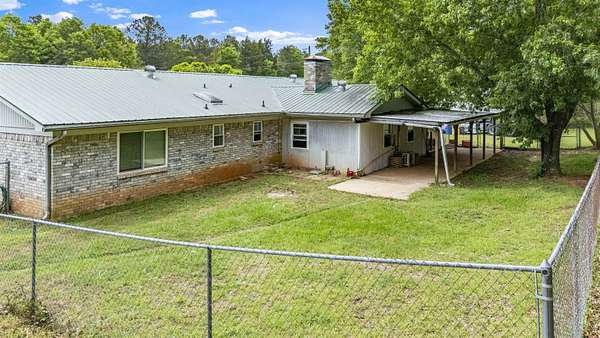 Spacious and versatile, this 4 bedroom, 3 bathroom brick home offers 2,520 heated and cooled square feet on 2.26 acres with the kind of extras that are hard to find. From the moment you arrive, you will notice the asphalt driveway, the lean-to two car carport, the separate two car garage, and the added storage building with roll-up door, giving you outstanding space for vehicles, tools, hobbies, and equipment. Inside, the home features updated vinyl plank flooring, granite countertops, tile backsplash, and stainless appliances in the kitchen. The large living room is anchored by a beautiful brick fireplace and hearth, creating a warm and inviting central gathering space. A formal dining area or breakfast room adds flexibility for everyday living and entertaining. One of the standout features is the enclosed addition that has been transformed into a fourth bedroom with its own full bathroom and splitter unit, making it ideal for guests, multigenerational living, or a private retreat. The layout also includes generously sized secondary bedrooms, a hall bath with double sinks, and a spacious primary suite with two closets and a sit tub shower combination. This property offers meaningful updates that add value and peace of mind, including new windows installed in 2020 with a lifetime warranty, a brand new HVAC system in 2022, a hot water heater from 2022, and a septic system that is approximately six years old. Additional features include ceiling fans, two inch blinds, covered porches, city water, and a chain link fenced yard with a separate dog run area. With its larger acreage, multiple outbuildings, flexible floor plan, and impressive list of improvements, this property offers a rare combination of space, function, and comfort.