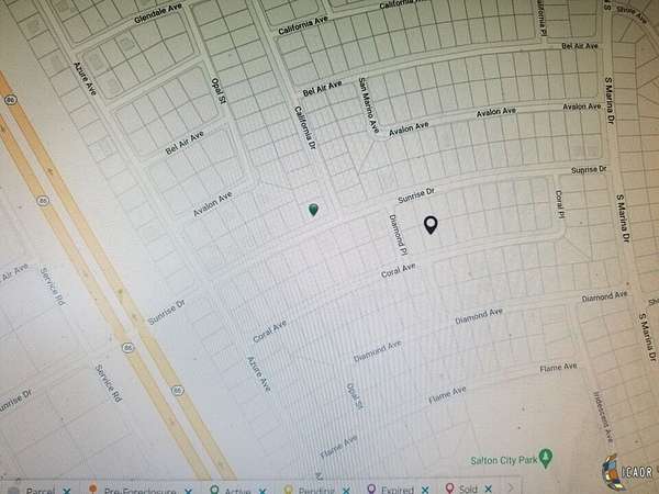 Est $135/moSalton City, Ca. 1258 Coral Avenue. Residential Lot Zoned R1. Close to the sea/lake. Great location close to local schools. You own the land. No HOA's. Views. Utilities close in street and rear. Area know for its gorgeous winter weather. Lower IID electric in this area. Area also growing in popularity due to Lithium and geo thermal as well as permanent residential sales as this is an area of California that still has affordable land and homes close to desert cities of Palm Springs, Indio, Coachella, Brawley and El Centro. APN 015-023-007.