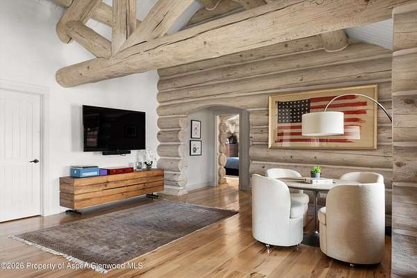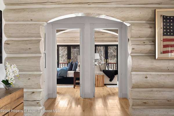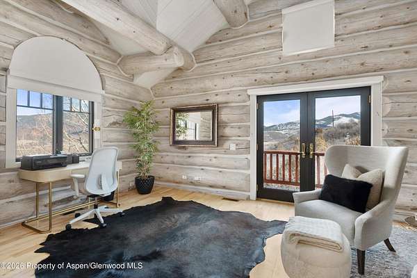 Available for long and short term rentals! Known as ''Satisfaction Ridge,'' this beautifully reimagined log home sits on over 1.7 private acres in Brush Creek Village, offering sweeping valley views and a peaceful mountain setting just 15 minutes to downtown Aspen or Snowmass Base Village. The 5-bedroom, 4.5-bath residence spans 4,343 square feet and features a light whitewashed log interior that brightens the traditional cabin aesthetic while preserving its classic mountain character. Vaulted ceilings, exposed beams, and a dual-sided gas fireplace anchor the main living spaces, while the dining room opens seamlessly to the backyard through folding glass doors. Outdoor entertaining areas include a lawn, built-in grill, fire pit, outdoor dining area, and hot tub. With over 1.7 acres of privacy, panoramic views, and convenient access to both Aspen and Snowmass, the property offers a rare balance of serenity and accessibility. Availability long term for $25,000 monthly starting September 10, 2026