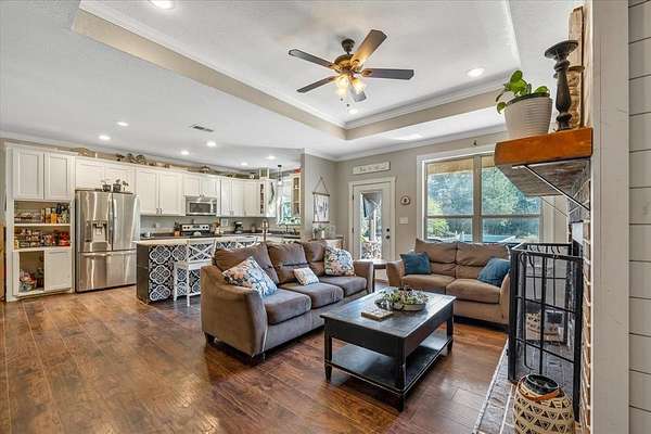 Dreaming of peaceful country living? This desirable 10-acre property offers the perfect blend of peaceful, rural living and modern comfort. This spacious 4-bedroom barndominium, built in 2015, welcomes you with an entryway and formal dining space, and features a split floor plan, centered on a large kitchen with an island. The open concept kitchen is adjacent to living space that is anchored by a cozy fireplace. Four bedrooms and two bathrooms offer space for family, guests, an office, or a hobby room, while the outdoors offer endless possibilities for farming, livestock, homesteading, gardening, or whatever your heart desires. Step outside to take in the East Texas countryside, surrounded by towering trees and wide-open skies. The property includes a 2-car carport and plenty of room to add a shop or barn. Nestled on a quiet, tree-lined county road, conveniently located between Athens and Tyler, this property offers the tranquility of country life with easy access to town and amenities.