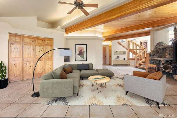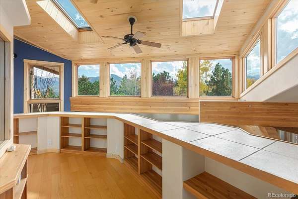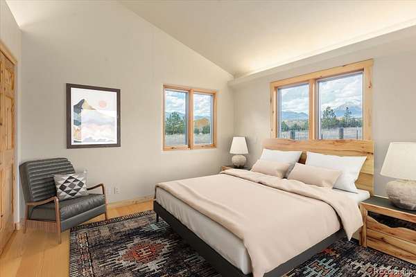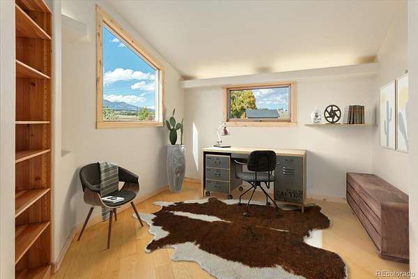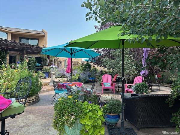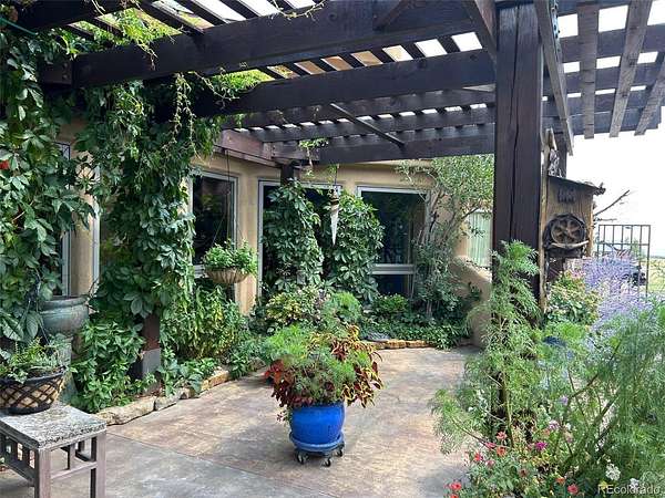 This exceptional one-of-a-kind Santa Fe-style residence offers an extraordinary blend of privacy, craftsmanship and breath-taking mountain views from every angle. Situated on 3.5 acres, with an augmented well that allows for up to 2 heads of livestock and watering 14,810 sq. ft. of lawn & garden, well over the designated space. Inside you will find spacious open living space: starting with the gracious entry way. Ideal for entertaining, the kitchen has an expansive open dining gathering area with sweeping mountain views and glass doors that lead to a large stained concrete patio. A chef's dream, the kitchen offers wide granite countertops, alder wood cabinetry, double ovens, a copper farm-house sink, on demand hot water tap, large gas grill and high-end stainless steel appliances. 2 bedrooms and a full bath are nestled behind the kitchen and dining area. Down a small flight of stairs there is a large living room with wood stove that sits in a stone alcove, along with the laundry/utility room and another bathroom. Off the living room is a beautiful sunroom for plants, or it can be used as a second entry way from the garage. Downstairs is a second utility room and a very large dry storage area. Up the stairs you will find the primary suite that features a balcony, large walk-in closet, 5 piece bathroom and a wonderful loft/office space with built-ins. You will notice the home features many nooks, crannies, ample closet and storage space throughout. Let's not forget the outside! This property has an extremely unique privately walled patio-with drip irrigation, perennials, hot tub, 3 pergolas, and metal work. Perfect for taking in sunsets, this patio is a magical area for all your festivities. Home also has an oversized three car insulated attached garage with utility sink and workspace area. Don't miss the large RV garage in the back! In-floor radiant heat, central vac, exposed wood beams, AND NEW SOLAR PANELS make this a stand out. No electric bill! A Must See!