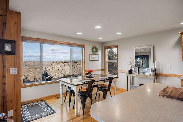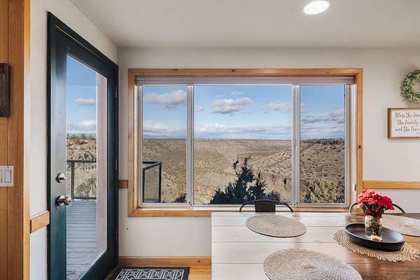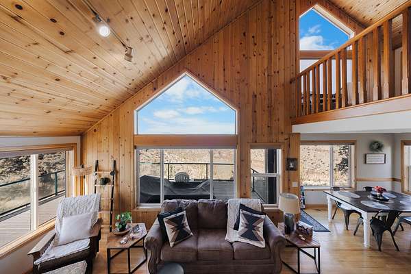 Set directly on the canyon's edge, this stunning private home captures sweeping mountain and canyon views that feel endless. Thoughtful upgrades throughout enhance both comfort and style, including fresh interior and exterior paint, a beautifully refinished deck, new window coverings, updated appliances, and a new heat pump. Designed to maximize its extraordinary setting, this home offers a rare blend of privacy, modern updates, and unforgettable scenery.