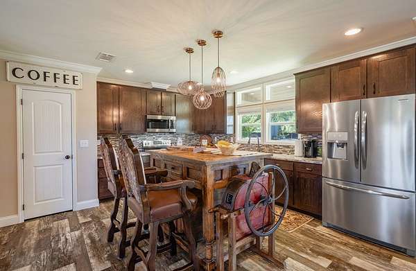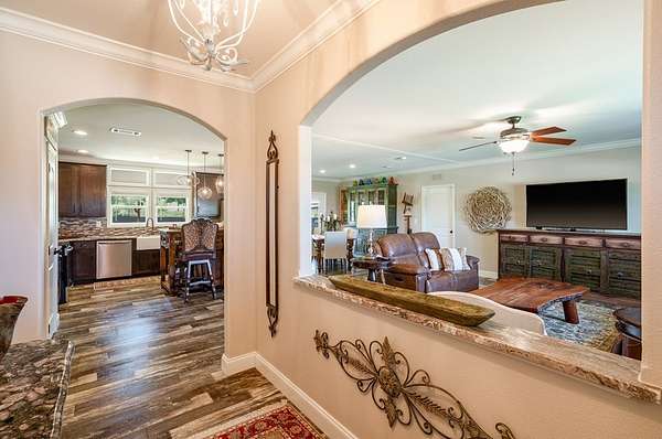 Imagine the possibilities; are you looking to have your family, your business and your equipment all in one place? Have you envisioned an income producing property with unlimited options? This unique property offers 5.53 fenced and gated acres with two entrances. Welcome to two beautifully appointed & impeccably kept main houses with covered parking for four. EACH of these homes offers 1920 sq. ft. with three spacious bedrooms and 2 bathrooms. Features of note include entry foyers, large bedrooms, new flooring, granite countertops, custom islands, beautiful lighting, oversized crown & base trim throughout. James Hardi concrete siding, 2x6 walls, upgrade insulation in sidewall and roof. Step out to the salt pool and custom covered bar area perfect for family outing or corporate retreat. The guest house of 900 sq ft lends itself to multi generational living or caretakers/office quarters and includes covered parking for two vehicles: a spacious great room with ample kitchen 1 bed 1 bath plus storage and a large walk-in climate-controlled pantry. Tons of room to utilize this well laid out property and create your vision. RV hook-up, cover and workshop convey. Truly a must see.