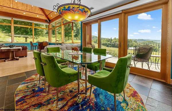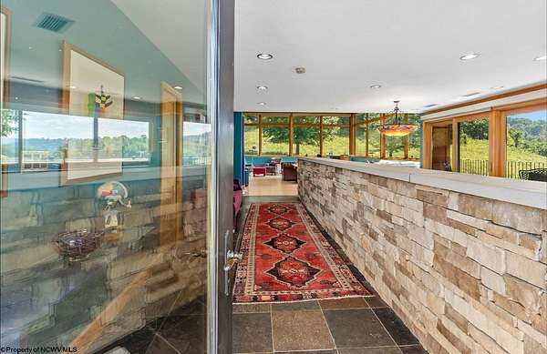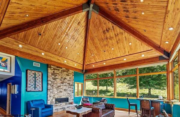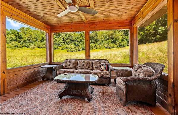 This exceptional property offers a unique blend of luxury and tranquility, perfect for those seeking a peaceful retreat while still enjoying modern amenities. The expansive 67 +/- acres provide ample space for outdoor activities, whether it's hiking, horseback riding, or simply exploring the natural beauty that surrounds you. As you enter inside, the open-concept design invites an abundance of natural light, highlighting the exquisite craftsmanship throughout. The gathering room features a stunning stone fireplace that serves as a focal point, creating a warm and inviting atmosphere for gatherings or entertaining guests. The gourmet kitchen is a chef's dream, equipped with high-end appliances, ample counter space and custom cabinetry. Whether you're preparing a casual meal or hosting an elaborate dinner party, this kitchen is designed to impress. The stone fireplace in the gathering room serves as a stunning focal point and provides warmth during cooler months. Imagine cozy evenings spent by the fire while enjoying the panoramic views through the expansive windows. The screened-in sun porch offers the perfect spot to unwind with a book or enjoy your morning coffee while taking in the breathtaking views of the landscape. With patios and decking surrounding the home, you'll have plenty of options for outdoor dining and relaxation.