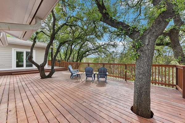 Walk the spectacular grounds of this fully remodeled 3,029-square-foot single-story retreat resting on 4.17 unrestricted acres. Boasting breathtaking panoramic hill country views and zero HOA restrictions, this highly private property offers a lifestyle of boundless freedom. Inside, the brilliantly designed floor plan maximizes natural light through strategically placed skylights, illuminating the high-quality finishes throughout. The expansive kitchen serves as the highly functional center of the home, featuring an incredibly spacious walk-in pantry with custom shelving, a center island, and extensive counter space. Entertaining flows effortlessly into the formal dining area and the dedicated family flex room, while a designated workout room adds everyday convenience. The impressive primary suite provides a peaceful escape, complete with a cozy fireplace, dual walk-in closets, and a luxurious primary bathroom boasting a large glass walk-in shower and dual vanities. Two additional generously sized bedrooms and two full bathrooms comfortably accommodate family or guests. Step outside to find the true architectural highlight: a spectacular oversized wooden deck expertly built around towering mature oaks, creating a magical treehouse aesthetic that is ideal for outdoor dining and taking in the wide-open Texas skies. With the expansive unrestricted tract, you have the incredible ability to build a secondary dwelling, forming a private multi-generational family compound. Enjoy the complete serenity of rural living while remaining just minutes from the recreational shores of Lake Travis, Krause Springs, and acclaimed local wineries. Residents also benefit from top-rated Spicewood schools and quick access to premier shopping, dining, and amenities in nearby Bee Cave. Come see the unmatched appeal of this property for yourself.