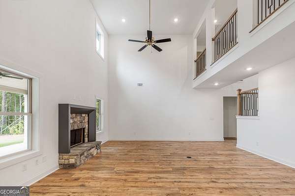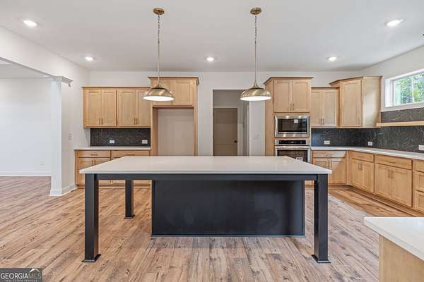 Introducing the highly requested "Pendleton II" plan in Trademark's newest Pike County subdivision! Nestled on a beautiful 3-acre lot with street lights and fiber internet available, this stunning new construction home offers luxury, space, and timeless curb appeal. With 5 bedrooms and 3.5 baths, this thoughtfully designed home begins with a grand two-story foyer and a formal dining room, perfect for entertaining. The spacious two-story family room features a charming wood-burning fireplace, creating a warm and inviting atmosphere. The newly redesigned kitchen is a showstopper with added cabinetry, abundant windows for natural light, quartz countertops, a designer tile backsplash, built-in stainless steel appliances, and a large island. The cozy breakfast area offers direct access to a large covered back porch - ideal for outdoor dining or relaxing in nature. The main-level owner's suite is a private retreat featuring a walk-in closet, a luxurious bath with a tiled shower, freestanding soaking tub, and double quartz vanity. A convenient powder room completes the main floor. Upstairs, you'll find a spacious recreation/living area, plus four additional guest bedrooms and two full baths - providing plenty of space for family, guests, or a home office setup. Enjoy peaceful mornings and evenings from your rocking chair front porch or the expansive covered back patio overlooking your wooded property. Additional premium features include: * Cement board siding * Architectural shingles * Low-E energy-efficient windows * Spray foam attic insulation * Smart home features: keyless deadbolt, select smart switches, video doorbell & more. Builder requires a 2% construction deposit and offers a $2,500 credit with use of a preferred lender - plus an additional $2,500 from the lender! Covenants and preferred lender information available in documents. Call, text or email for pre-sale opportunities or visit our website for more information!