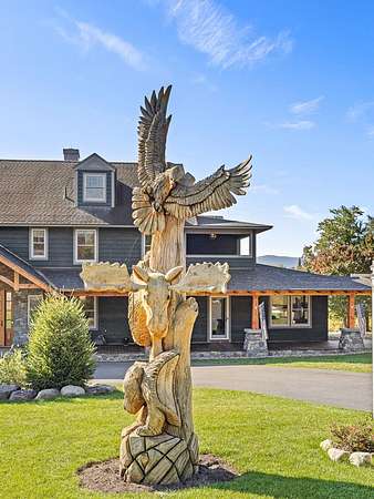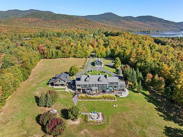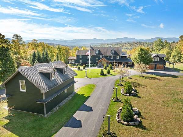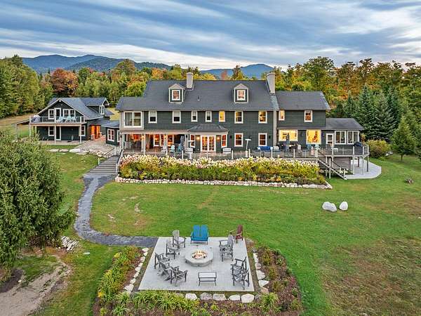Set on 4.8 level acres w manicured lawns, this remarkable property offers unmatched privacy & breathtaking, panoramic views of the Southern Range, with the Olympic ski jumps & Mt. Van Hoevenberg sliding track visible in the distance, only a few hundred feet from the edge of the Whiteface Club & Resort's championship course's 5th hole. Completely remodeled & expanded since 2022, the 11-bedroom, 7.5-bath residence spans 9,580SF. Every major system has been replaced or upgraded. Connected to the main residence by a covered breezeway is a newly constructed 2 stall garage with EV charger, 2nd level office (or bedroom), full BA, & kitchen. In the main house, the fully remodeled kitchen flows to a screened three-season porch, formal dining & living rooms, & the spectacular Pub Room. This inviting space features the original cobblestone wood-burning fireplace, a built-in bar w refrigerator, kegerator, sink, & dishwasher. The lower level includes a separate entrance, 2 BRs, and a 3/4 bath. On the 2nd level, 6 BRs are thoughtfully arranged-3 w private en suite baths. The primary suite offers sweeping views, a large walk-in closet, a private porch, and a luxurious bath complete w sauna. The 3rd floor hosts 2 BRs w a fully renovated BA. A broad deck spans the rear of the home, perfect for entertaining against the backdrop of the High Peaks. The grounds include a detached garage, firepit, gazebo, & basketball court, w access to the renowned Jackrabbit Trail system. Membership at the Whiteface Club brings a full array of four-season amenities: an 18-hole golf course, 2 on-site restaurants, a tennis center, a sandy swimming beach on Lake Placid, a marina and 14 km of groomed Nordic ski trails. Snow removal, garbage pickup, lawn care & seasonal home checks are all managed by the Club. A coveted boat slip is also available for lease w the sale. This once-in-a-lifetime property is perfectly suited as a generational gathering place, a corporate retreat, or an extraordinary residence.