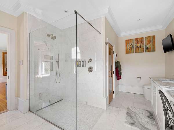 - Bar, Beamed Ceilings, Built-In Features, Crown Molding, Entrance Foyer, High Speed Internet, Kitchen Island, Natural Woodwork, Sauna, Walk-In Closet(s), Wet Bar