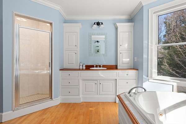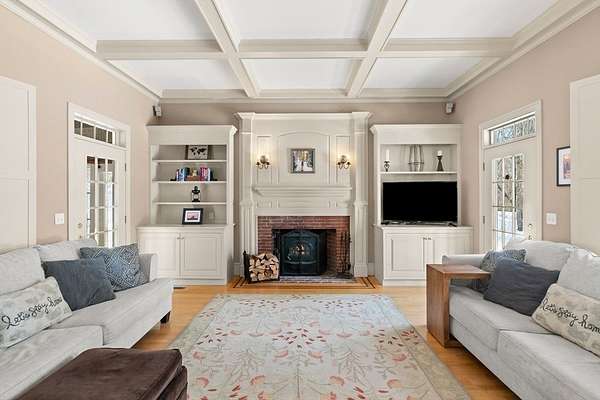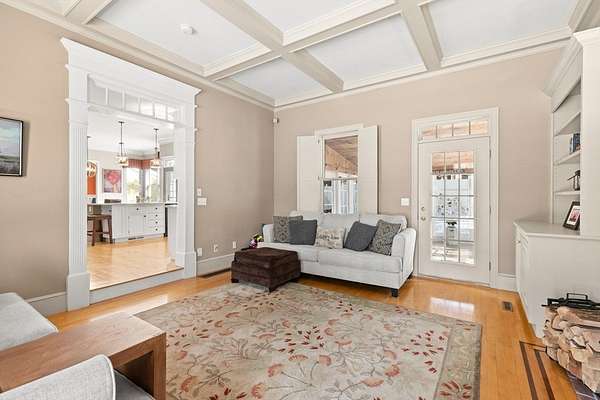Stately custom-built home set on 3.75 private acres, offering timeless elegance & refined detail throughout. This 4-bedroom residence features 2 full & 2 half baths w/ exceptional craftsmanship including: inlaid hardwood floors, soaring 10-foot ceilings, barrel vaulted ceiling, built-ins & interior transom windows that enhance natural light. The freshened kitchen, featuring subzero & wolf appliances, opens to beautiful family room w/a coffered ceiling, built-ins & anchored by an impressive masonry fireplace. A spacious 3 season porch will delight. A 3-car garage adds convenience & storage. Finished basement offers a media space, office/play room. Enjoy a peaceful, private setting just minutes to Newburyport, beaches, highways, & Boston. Mature gardens & gorgeous hardscape define the yard. Plenty of room to expand beyond the fence line, add the pool! A rare offering in an exceptional location. Priced for an immediate sale, do not miss this opportunity! Sunday open house 1:30-3:00.