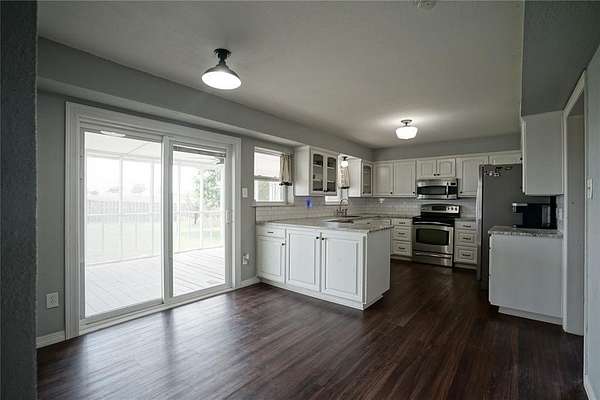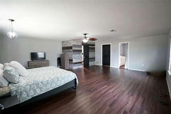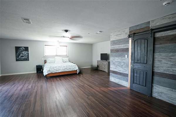 Situated on just under 4 acres. This home features 3 bedrooms, 3 full baths with the Primary bedroom and 1 other bedroom downstairs. Lovely eat-in kitchen with stainless steel appliances and granite countertops. Oversized master bedroom with ensuite bathroom including a separate jetted tub and large shower. Upstairs, there's an open area, perfect for a game room, mancave, exercise room, 2nd living area, or even a 4th bedroom. Additional oversized bedroom and full bath complete the upstairs area. This property has a lot to offer including a barn, and cross fencing.