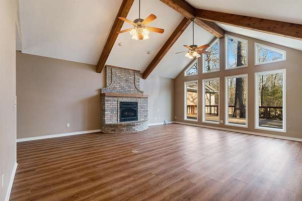 Private lake access on 3.17 wooded acres. This beautiful 4 bedroom, 2 bath home offers a perfect blend of comfort and tranquility. Ideal for the buyer seeking both space and nature. With a thoughtfully designed split bedroom arrangement, this home ensures privacy for everyone and togetherness in the heart of the home that features vaulted ceilings, floor to ceiling windows and a beautiful fireplace! As you step inside, you'll be greeted by warm interiors featuring spacious living and modern kitchen that will make meal prep a delight! Imagine preparing your holiday meals in this well appointed kitchen. The expansive outdoor space is perfect for hosting barbecues or just relaxing and enjoying nature. Just a short walk or ride away from your doorstep lies private lake access, a hidden gem waiting to be explored and enjoyed. Spend weekends fishing, kayaking or simply enjoying the peaceful ambiance of lakeside living. Don't miss out on this unique opportunity to own a slice of paradise conveniently located between Paris and the Red River! Schedule your showing today and find out what makes this property so special!