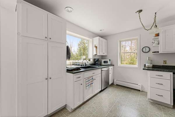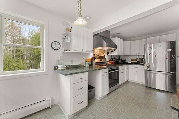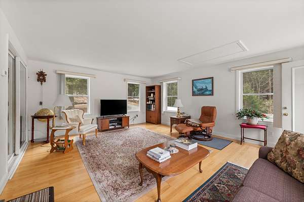 Spacious 3-bedroom cape in low-tax Hebron! Home is set back from the road, on a mostly-cleared 2.6 acre lot. At the back of the lot is the Tannery Brook. Spacious living room has radiant heat and lots of natural light. The eat-in kitchen is a sun-filled room which looks out onto the beautifully landscaped back yard. The primary bedroom has an attached bathroom. The basement is partially finished. Large deck to enjoy the peace and quiet, with a shed and additional space for storage. Attached garage gives you direct access to the home. Access to the Hebron town beach on pristine Newfound Lake.
