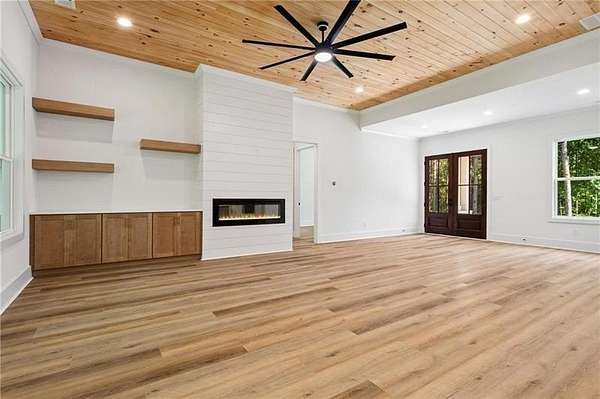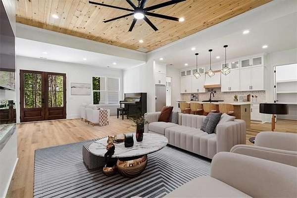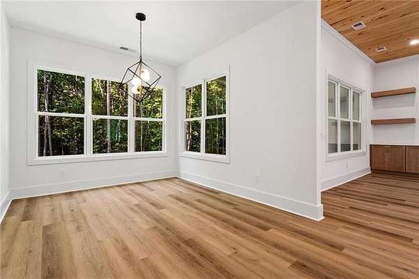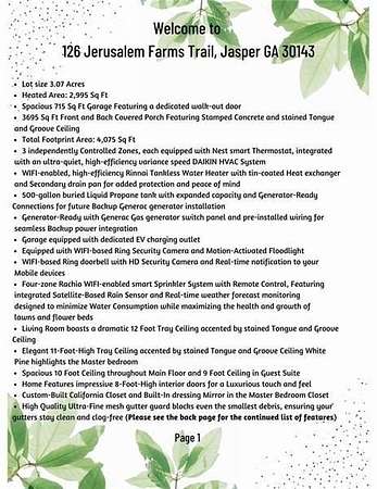 Discover this exceptional new construction home perfectly situated on a serene 3.07-acre lot in the picturesque town of Jasper, Georgia. Thoughtfully designed for both comfort and elegance, this residence combines privacy, functionality, and high-end finishes throughout its 4 bedrooms and 3.5 bathrooms. From the moment you arrive, the home's curb appeal impresses with a charming farm-style wooden fence, concrete driveway, stamped concrete walkway, and an inviting front porch, setting the tone for the refined living that awaits inside. Step into an open-concept floor plan featuring 10-foot ceilings and a dramatic 12-foot tongue-and-groove tray ceiling in the main living areas. Sunlight fills the space, accentuating the rich LVP flooring and modern 60-inch electric fireplace that anchors the living room. The gourmet kitchen is a true showpiece, complete with quartz countertops, BOSCH appliances, including a dual gas range, refrigerator, dishwasher, SHARP built-in microwave drawer, and pot filler, making it ideal for both everyday living and entertaining. The owner's suite on the main level provides a luxurious retreat, offering dual vanities, a soaking tub, a spacious walk-in shower, and a custom California closet with built-in dressing mirror. Two additional main-level bedrooms share a well-appointed bathroom, providing comfort and privacy for family or guests. Upstairs, you'll find a private in-law suite complete with a full bathroom, walk-in closet, smart thermostat, and access to a large walk-in attic for convenient storage. Enjoy outdoor living on the covered front and rear porches, or take advantage of the expansive backyard, perfect for a future pool or outdoor oasis. The oversized 715-square-foot two-car garage features a separate walk-out door and EV charger outlet. This home is equipped with premium systems, including a Rinnai tankless water heater, Rachio 4-zone smart sprinkler system, Ring security system, Nest thermostats, and a high-efficiency 3-zoned Daikin HVAC system; one of the best warranties in the industry. It's also pre-wired for a Generac gas generator for added peace of mind. Conveniently located just 10 minutes from local amenities such as Publix, Home Depot, Kroger, Walmart Supercenter, and the upcoming Chick-fil-A, this home offers easy access to both nature and convenience. Carters Lake is only 20 minutes away, while Amicalola Falls State Park and the Appalachian and Chattahoochee National Forests are within easy reach. Downtown Ball Ground, Northside Cherokee Hospital, and Piedmont Mountainside Hospital are also nearby. Blending modern elegance with peaceful rural charm, this Jasper home offers a rare opportunity to enjoy luxurious living with room to breathe.