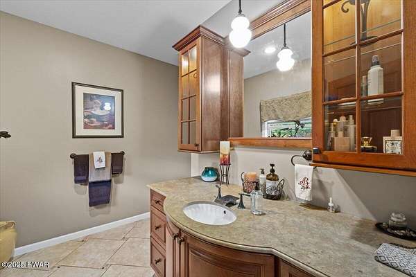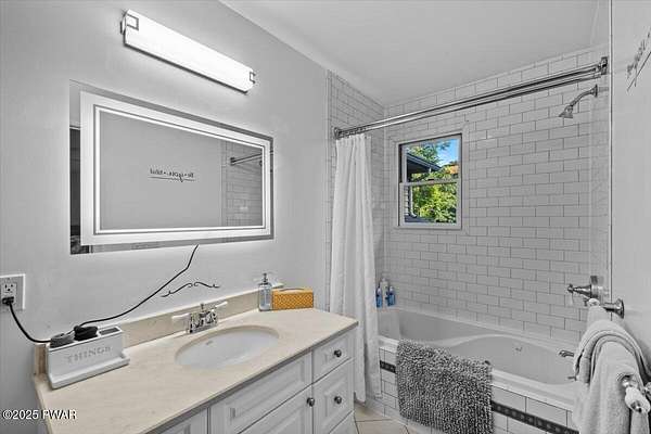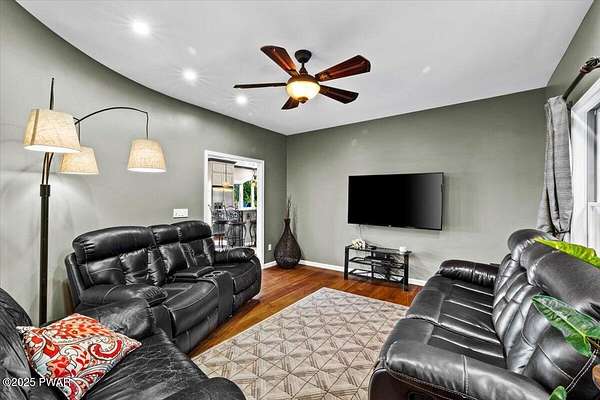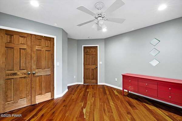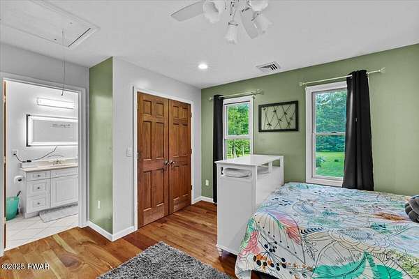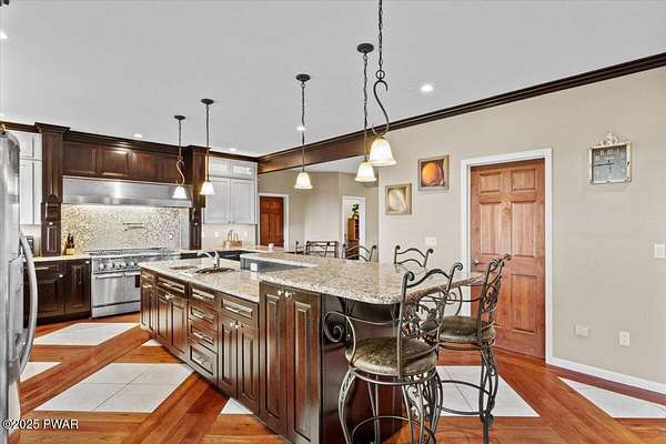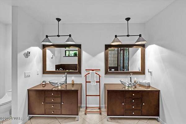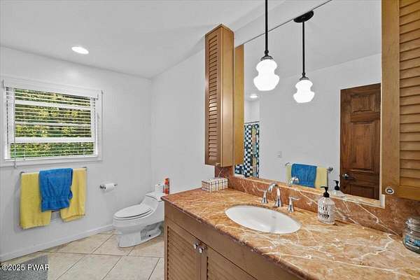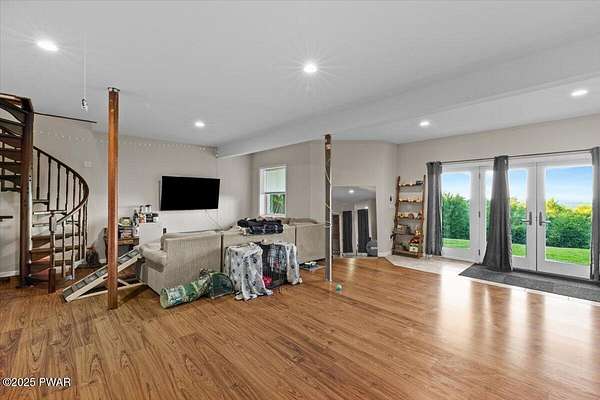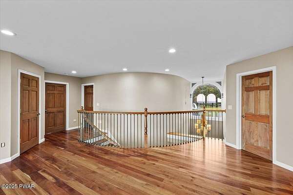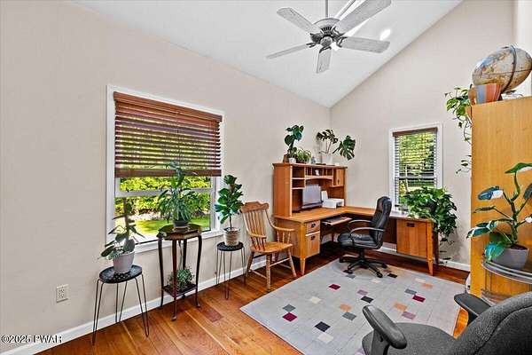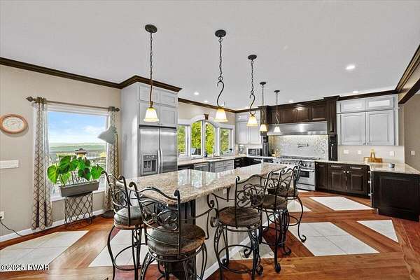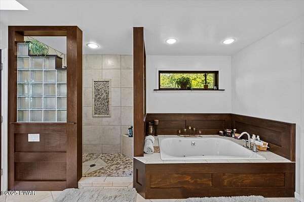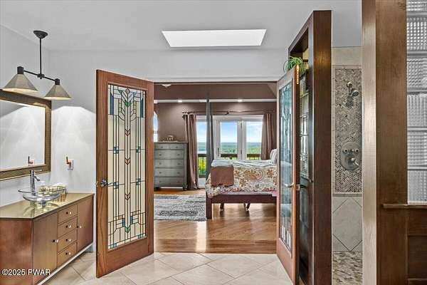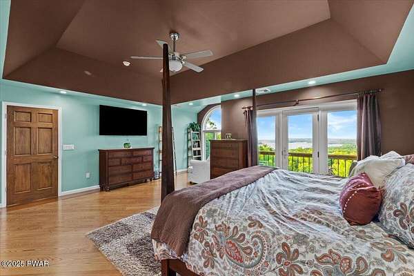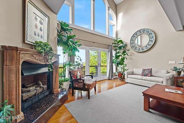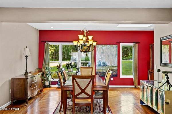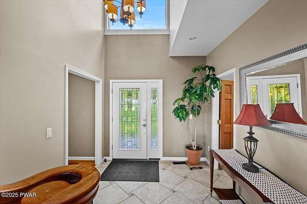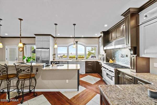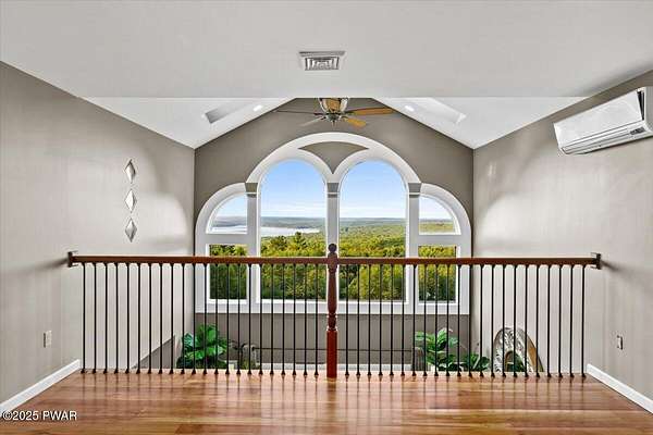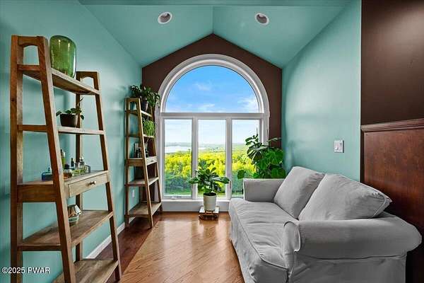 Perched high on a scenic hilltop in the heart of the Poconos, this extraordinary estate offers nearly 7,000 square feet of refined living space and an unmatched one-of-a-kind lake view that must be seen to be believed. Surrounded by natural beauty and ultimate privacy, this home was designed to capture the serenity of its surroundings from nearly every room.The entire first and second floors are finished with beautiful cherry and ash hardwood floors. Radiant heat warms the entire first floor as well as two of the bedrooms, providing exceptional comfort throughout the colder months.As you enter, you're welcomed by soaring ceilings, expansive windows, and an open floor plan that flows effortlessly--perfect for both entertaining and everyday luxury living. From the cozy fireplace and chef-style kitchen to grand living areas and private suites, every inch of this home has been thoughtfully crafted.Step outside to enjoy the peaceful sound of nature from your multiple decks and patios, all overlooking the lake and the lush Pocono landscape. On the 4th of July, you'll have a front-row seat to the area's spectacular fireworks show--right from the comfort of your own property.Bonus Feature: Tucked discreetly at the back of the property is a 25x40 detached garage--ideal for a workshop, boat or RV storage, car collection, or additional recreational space.Whether you're seeking a private family retreat, a forever home, or a luxurious getaway, this property is truly a rare gem in the Poconos.