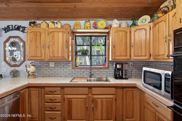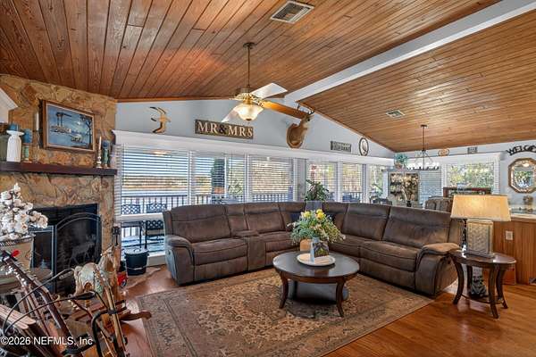 Dream lakefront estate with unmatched views. expansive privacy. Serene lakefront living. The home is in the Key West style surrounding an expansive water to sky vista from every major room and outdoor porches. Direct lake access on Lake Rocky perfect for boating, paddleboarding ,swimming or simple soaking in the sunset. Modern updated interior with new countertops and appliances. Downstairs offers master suite with office space and adorable guest area. Private dock, dockside firepit area and lounging nooks. Outdoor kitchen areas offer eating spaces, refrigerators and cooking area and bathroom. New windows and paint. Wild live abounds with deer, turkeys and rabbits in the private gated nearly 9 acre estate. Multiple storage areas for tools and equipment.