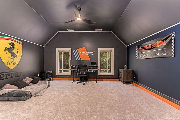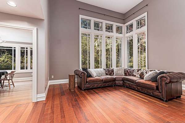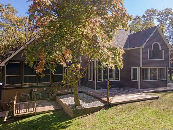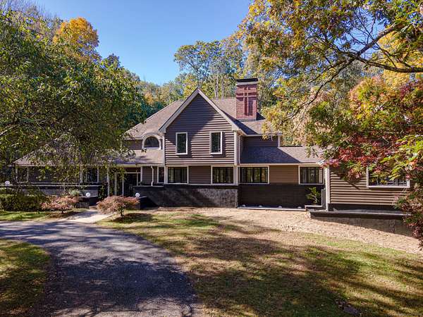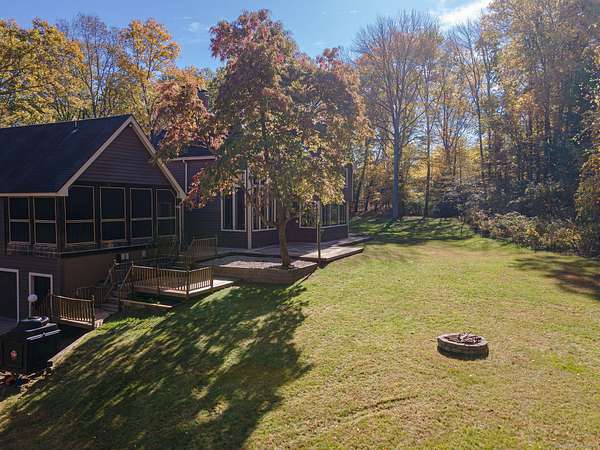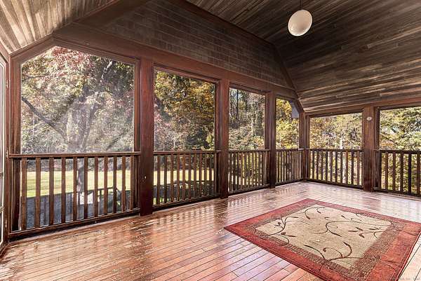 Beautiful 4 bedroom, 4 bath, 3739 sq ft contemporary home in a private setting on 10 acres. This home features a large kitchen with plenty of space for multiple cooks and is open to a fireplaced living room with soaring 16' ceilings and floor to ceiling windows that overlook the wooded backyard. Access from the kitchen to the dining room is through a convenient butler's pantry. You'll also find a wet bar and mini fridge. There are 3 bedroom suites each with its own full bath. The 4th bedroom (currently being used as an office) is in its own wing with another full bath. Outside you can enjoy the sounds of nature on the lovely screened porch with mahogany floors.
