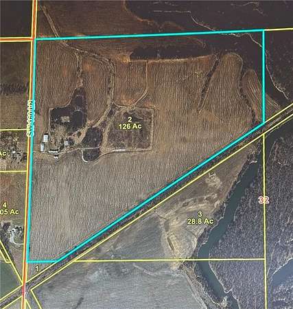 127 Acre Southwest Missouri Farm that has 100 acres of tillable ground (cash leased) and the balance in Hunting ground and the area up front that contains 2 large metal buildings and 7 grain bins. It also has an old swine raising area that is all concrete and could be used for several things. There is a Strip Pit in the Northeast corner of property that is partially on this property. The property also has a Hunting lease that could be extended if new buyer wanted. Hunting Blinds and stands do not sale with property.
