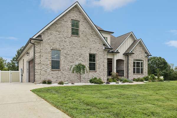Welcome to this light-filled, custom-built luxury home in the highly sought-after Covington neighborhood, just over a mile from I-24. Nestled among the rolling hills of Beechgrove, this exceptional residence offers generous living space, refined craftsmanship, and an impressive outdoor entertaining retreat. Savor morning coffee or evening dinners on the expansive back deck, accompanied by the tranquil sounds of the creek bordering the rear of the property. Unwind on the inviting front porch as you take in breathtaking sunset views over the surrounding hills. Inside, the home showcases elegant architectural details, including rounded corners, soaring ceilings, extensive millwork, judges paneling, and premium lighting and ceiling fans throughout. The thoughtfully designed kitchen features built-in appliances and seamless functionality, ideal for both everyday living and entertaining. Situated on a beautifully landscaped lot, the fully fenced backyard is an entertainer's dream--complete with attractive vinyl fencing, expansive stone slab patios, a hot tub, and a built-in bar, creating the perfect setting for relaxation or hosting guests. The upper level offers three additional versatile rooms plus a hobby or storage space, providing exceptional flexibility to suit a variety of lifestyle needs.