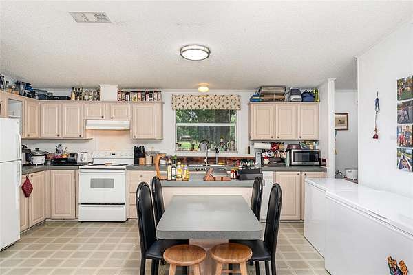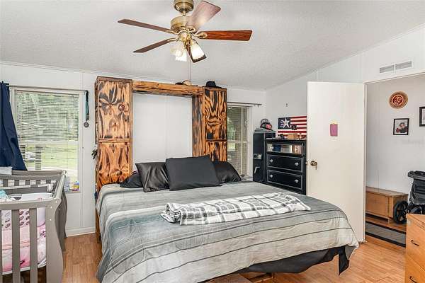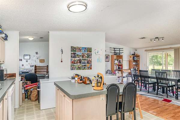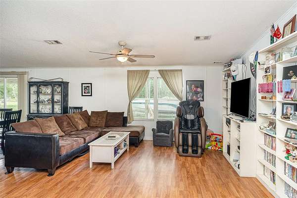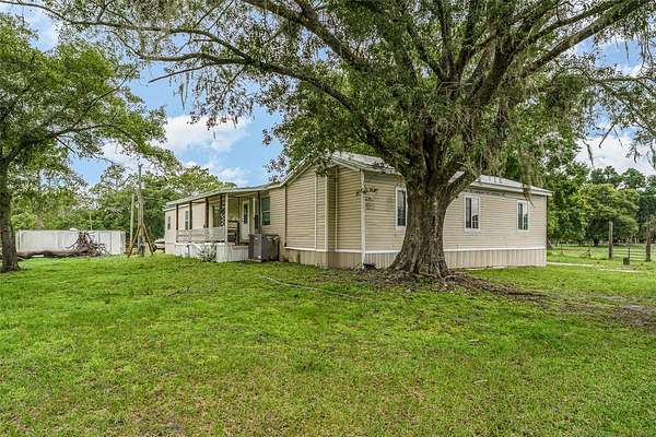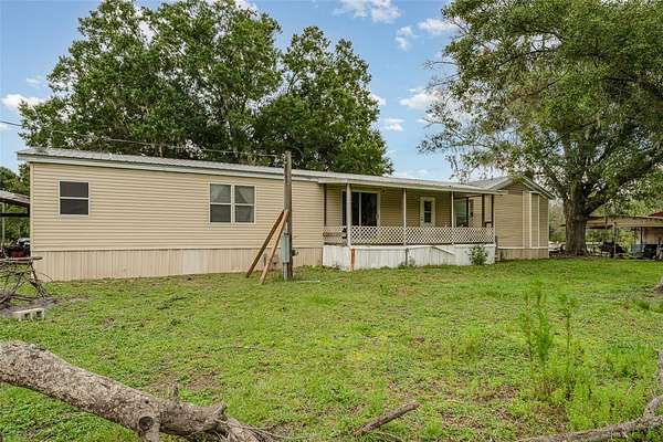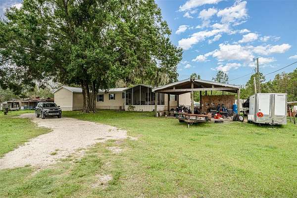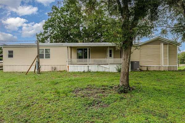 Welcome to 126 Wildlife Trail, a spacious 5-bedroom, 2-bath manufactured home nestled on a generous lot in the peaceful outskirts of Lakeland. This well-maintained property offers the perfect blend of comfort, space, and functionality, ideal for multi-generational living, growing families, or anyone in need of extra room to spread out. Inside, you'll find a thoughtfully designed layout featuring a large primary suite with a walk-in closet and a private en-suite bath, complete with dual sinks, a soaking tub, and separate shower. The home opens into a bright and expansive living room with built-in shelving and a ceiling fan, leading seamlessly into the dining area and oversized kitchen. The kitchen is well-equipped with ample cabinetry, center island, double sinks, and space for casual dining. A separate laundry room provides added convenience, while additional flex rooms can be used as home offices, playrooms, or guest quarters. The rear of the home includes a screened-in porch perfect for relaxing evenings, plus a covered deck ideal for outdoor dining or weekend barbecues. The lot also features a spacious driveway, mature trees offering shade and privacy, and an open-sided outbuilding perfect for storage, workshop use, or extra parking. The multi room addition is another mobile home and was NOT permitted.