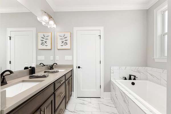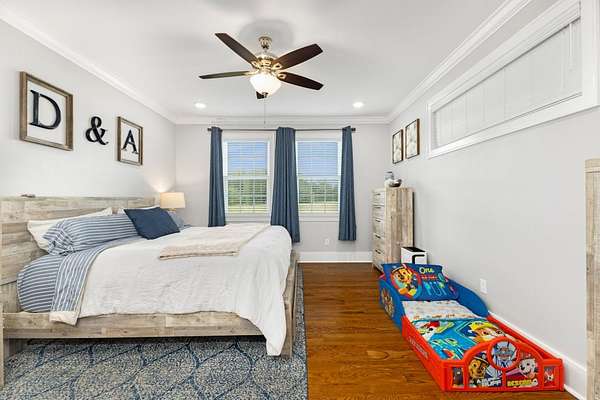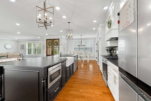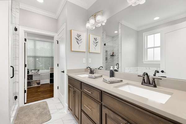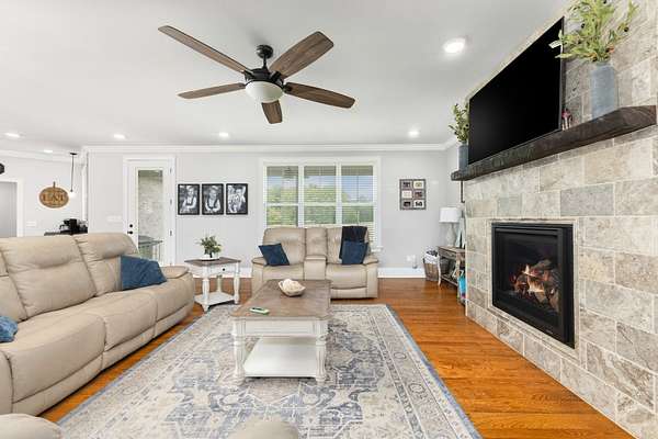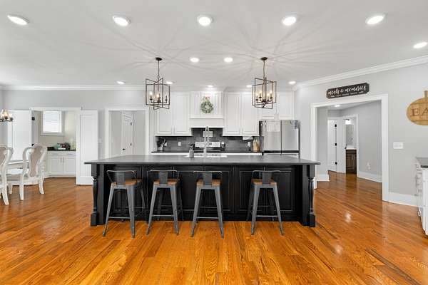 Absolutely Stunning Family Home! Built in 2021, this beautiful brick boasts gorgeous dormers from every direction and showcases an extra tall wood entry door. This home has 4 Bedrooms, 4 1/2 Baths, and is located in a highly desirable area sitting on nice .82 Acre lot. Special touches include custom cabinets, tile showers and surrounds, custom molding, wide planked hardwood floors, leathered granite, tiled backsplash, gas range, stainless appliances, a butler's pantry, upscale lighting and plumbing fixtures, tankless water heater, and a floor to ceiling tiled gas fireplace just in time for fall nights. A combined open living area, (which is the center of attention upon entry!), and the split bedroom floor plan are great for family time and then quiet time. A roomy laundry and mud room with built in bench leads to the oversized two car attached garage. The full basement has a full bathroom, a garage, and high overhead space. Property includes 2 concrete driveways, a spacious yard, and an exceptional location!