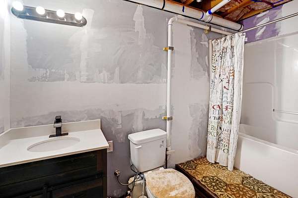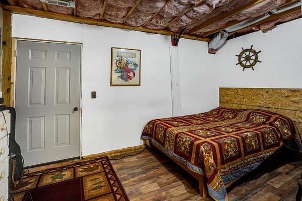 Affordable custom built lake home built in 2022 & situated on 5.49 acres w/237' of waterfront. This home is so cute on the inside. Great room w/cathedral ceiling, dining area & kitchen w/open floor plan & main level living. Spacious primary bedroom & bath. Guest bedroom is also on the main level & the third bedroom & bath are on the lower level which is partially finished(buyer to complete construction). The rest of the basement is unfinished and has lots of potential to be designed the way you want! Enjoy having a gentle lot and take a short walk down to the lake to catch lots of fish in this deep-water cove from your own private double floating docks. Only minutes to the Westlake area & a short drive to Roanoke. There is a small area of fencing in the back yard for dogs
