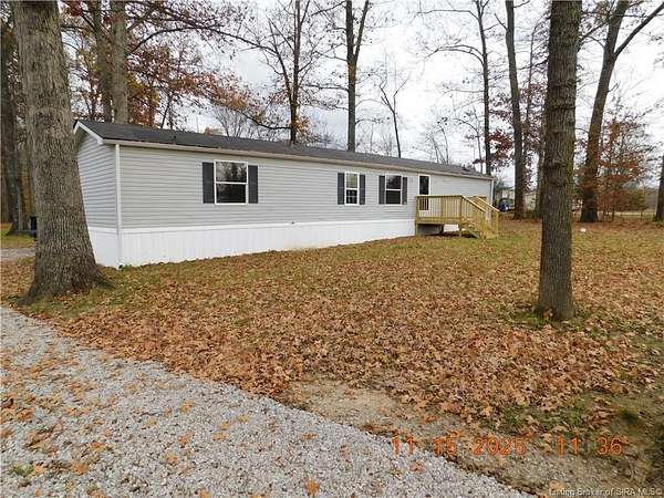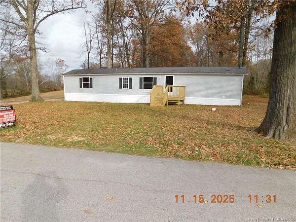 NEW LISTING!! This 1.5 acre wooded lot includes a move in ready Single Wide home located only 25 minutes from New Albany. It offers the perfect blend of country living with still being minutes away from city life. The home is a spacious 3 bedroom 2 full bath residence that has been extremely well taken care of, and comes with new Refrigerator, Oven/Range and Dishwasher. The home also includes newly built front and back wood porches and new gravel on the driveway. Seller welcomes inspections but the property is being SOLD AS-IS. Property lines are marked at each corner with orange tape tied to a post. Call today for your private showing and don't miss out on a property like this.