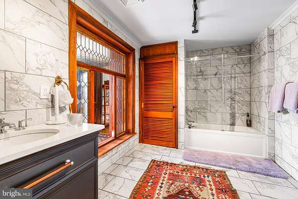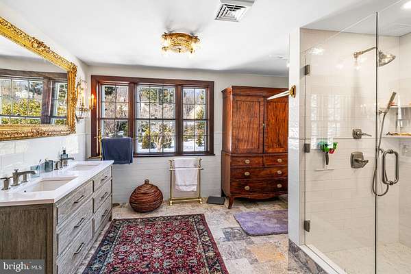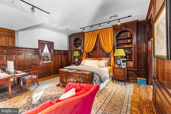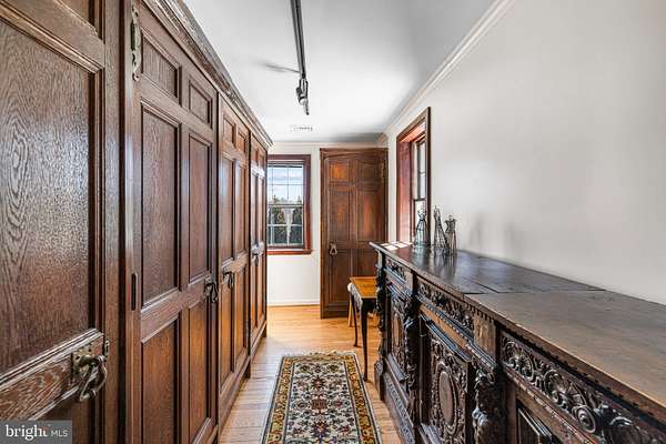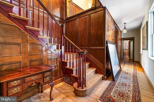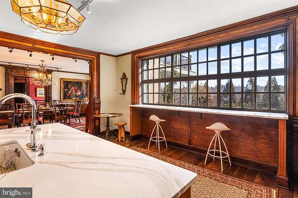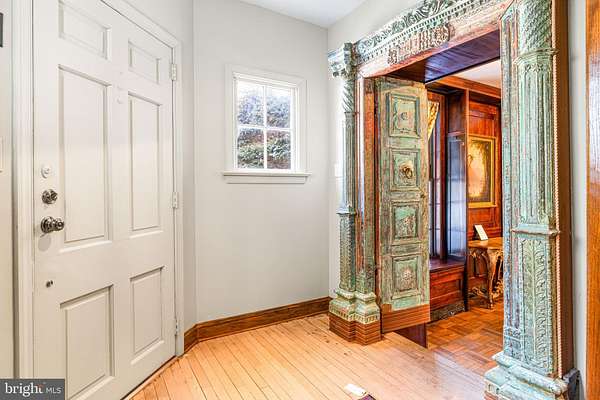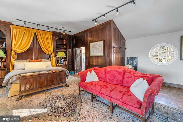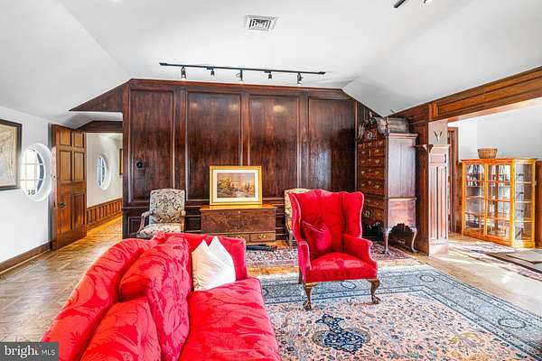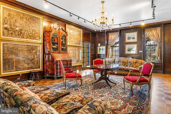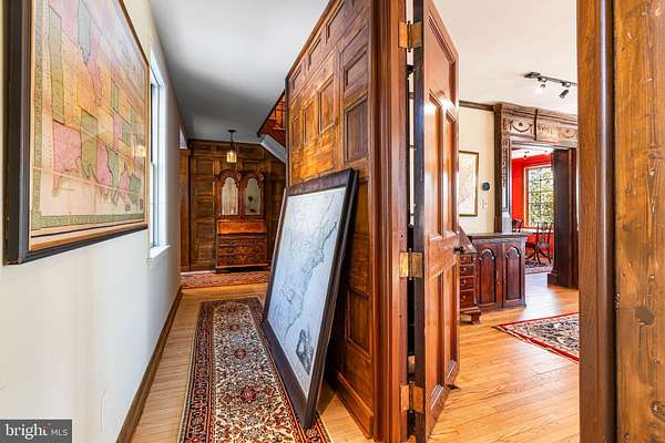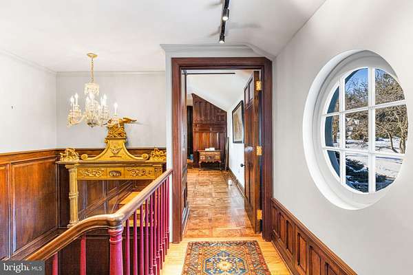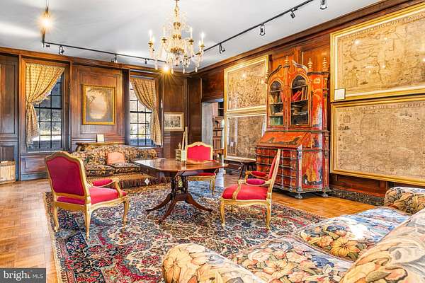 Set on nearly five acres in the heart of the Main Line, this notable 4 bedroom, 3 full and 1 half bath single family residence blends historic European craftsmanship with thoughtful modern upgrades. Originally constructed in 1930, the home offers just over 5,000 square feet of refined living space, surrounded by mature landscaping and one of the finest private conifer collections on the East Coast. Throughout the home, hand selected, period appropriate Farrow & Ball paint colors complement rare architectural elements and museum quality finishes. Cuban mahogany and walnut paneling sourced from the renowned J.P. Morgan Library grace the sunroom, ballroom, library, dining room, stairwell and primary suite, creating a sense of timeless elegance and historical significance. The sunroom features a hidden library, adding a layer of intrigue and charm. The kitchen was fully renovated in 2023 with custom cabinetry, a farmhouse sink, and high end appliances including an LG wall oven, LG convection microwave, LG gas cooktop, and a KitchenAid refrigerator. A beautifully detailed mudroom showcases 16th-century English paneling from the historic Guildford Estate, originally owned by industrialist George W. Elkins, with Tudor architectural elements imported from England and meticulously reassembled by European craftsmen. The primary suite continues the home's remarkable story, featuring J.P. Morgan Library paneling in the bedroom and Guildford Estate paneling in the dressing room; elements that took nearly a decade to complete in their original installation. Throughout the home, exquisite 19th century doors and doorways further enhance its architectural authenticity. Recent upgrades include new HVAC systems with programmable thermostats, plumbing and mechanical improvements by Haller Enterprises, a new septic tank, a 50-gallon water heater, and a new roof and gutters installed in October 2022. A full basement with laundry, attached garage, newly installed carport and patio provide both functionality and convenience. The grounds are equally impressive, featuring an exceptional collection of mature and rare trees, including Japanese maples, cryptomeria, weeping conifers, Serbian spruce, beech, and many others; creating a private arboretum like setting. A rare opportunity to own a property where architectural history, craftsmanship, and modern comfort converge in one of the Main Line's most desirable locations with low taxes. Please note also listed as Land, possible subdivision allowed. Watch the video tour to fully experience the property.
