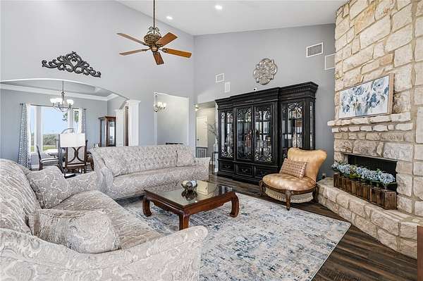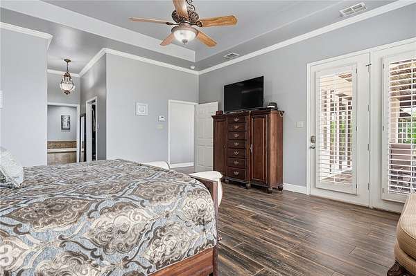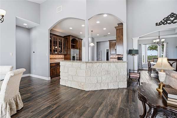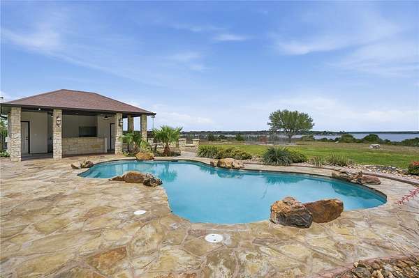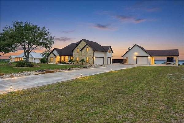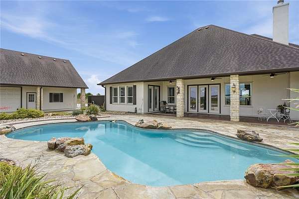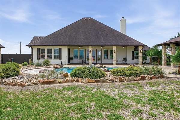Welcome to this exceptional retreat where luxury, privacy, & breathtaking views come together on 3.34 pristine acres in the highly sought-after gated community of Indian Hills. Overlooking the serene waters of Lake Corpus Christi, this beautifully remodeled estate offers an elevated lifestyle designed for both relaxation & unforgettable entertaining. Step inside to discover over 3,400 square feet of thoughtfully designed living space, featuring 3 spacious bedrooms, a dedicated office, & 2.5 baths. The heart of the home is a stunning, chef-inspired kitchen with SS appliances that seamlessly blends style and function-perfect for hosting or everyday living. The primary suite is a true sanctuary, featuring elegant plantation shutters, a beautiful tray ceiling, & private access to the back patio. The spa-like ensuite bath offers a serene retreat designed for ultimate relaxation & comfort. A versatile bonus room above the epoxy floored oversized garage provides endless possibilities-ideal for a media room, getaway space, fitness room, or private guest retreat. Outdoors, the property transforms into your own private resort. Enjoy sweeping lake views from your private backyard oasis, featuring lush landscaping, a sparkling pool with a stone cool deck, fire pit, & outdoor shower. The expansive outdoor kitchen is fully equipped with high-end propane grills, a stainless steel refrigerator & icemaker, generous prep space, & a convenient poolside half bath-perfect for effortless, upscale entertaining. The impressive 26x36 workshop with high ceilings, dual overhead doors, and attached carport offers flexible space for projects, storage, or RV/boat parking. With all the additional acreage, you have the freedom to live the lifestyle you've always wanted-expand, build, entertain, or simply enjoy the privacy & wide-open space. Every detail showcases exceptional care and quality. If you're seeking space, views, & elevated coastal-country living-your dream home is waiting for you!