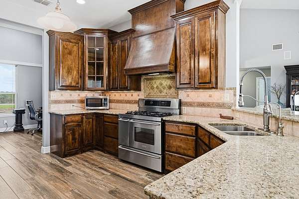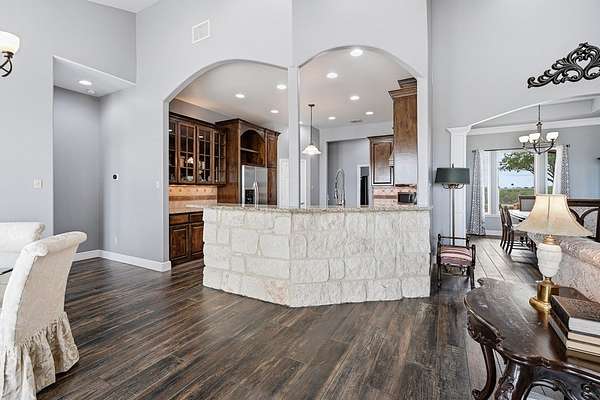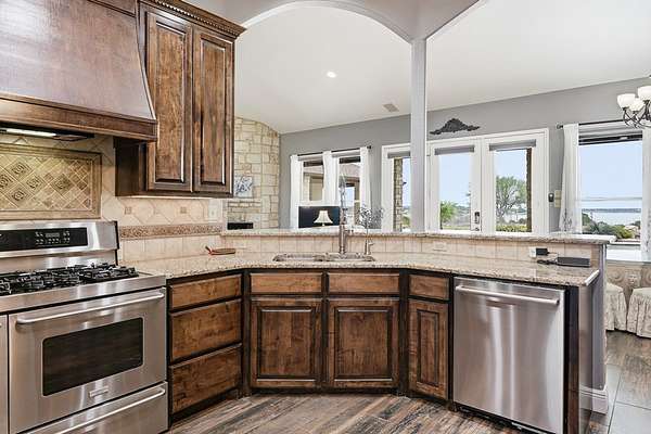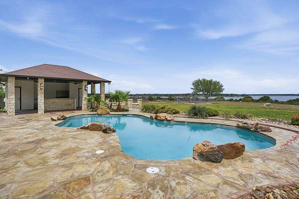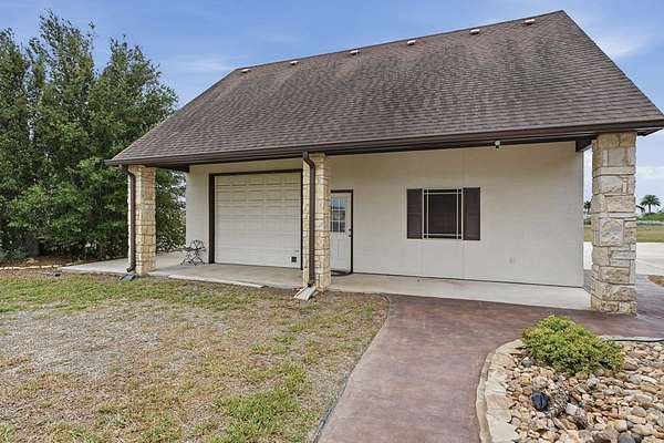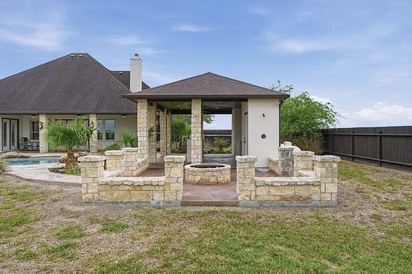 Welcome to this exceptional retreat where luxury, privacy, & breathtaking views come together on 3.34 pristine acres in the highly sought-after gated community of Indian Hills. Overlooking the serene waters of Lake Corpus Christi, this beautifully remodeled estate offers an elevated lifestyle designed for both relaxation & unforgettable entertaining. Step inside to discover over 3,400 square feet of thoughtfully designed living space, featuring 3 spacious bedrooms, a dedicated office, & 2.5 baths. The heart of the home is a stunning, chef-inspired kitchen with SS appliances that seamlessly blends style and function—perfect for hosting or everyday living. The primary suite is a true sanctuary, featuring elegant plantation shutters, a beautiful tray ceiling, & private access to the back patio. The spa-like ensuite bath offers a serene retreat designed for ultimate relaxation & comfort. A versatile bonus room above the epoxy floored oversized garage provides endless possibilities—ideal for a media room, getaway space, fitness room, or private guest retreat. Outdoors, the property transforms into your own private resort. Enjoy sweeping lake views from your private backyard oasis, featuring lush landscaping, a sparkling pool with a stone cool deck, fire pit, & outdoor shower. The expansive outdoor kitchen is fully equipped with high-end propane grills, a stainless steel refrigerator & icemaker, generous prep space, & a convenient poolside half bath—perfect for effortless, upscale entertaining. The impressive 26x36 workshop with high ceilings, dual overhead doors, and attached carport offers flexible space for projects, storage, or RV/boat parking. With all the additional acreage, you have the freedom to live the lifestyle you've always wanted—expand, build, entertain, or simply enjoy the privacy & wide-open space. Every detail showcases exceptional care and quality. If you're seeking space, views, & elevated coastal-country living—your dream home is waiting for you!