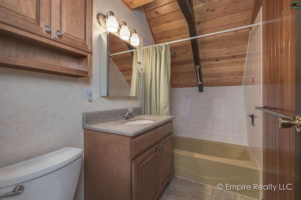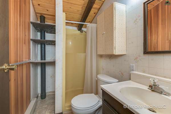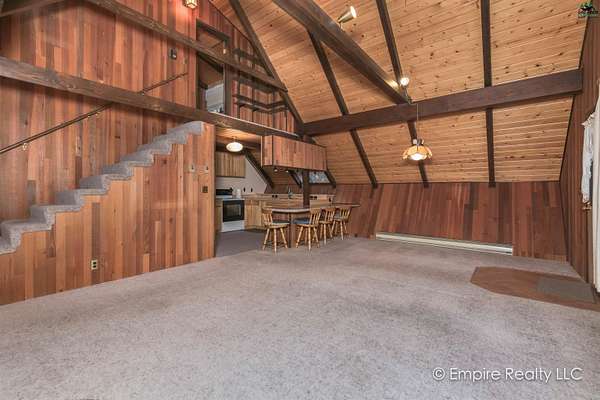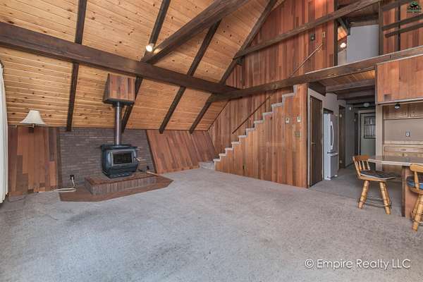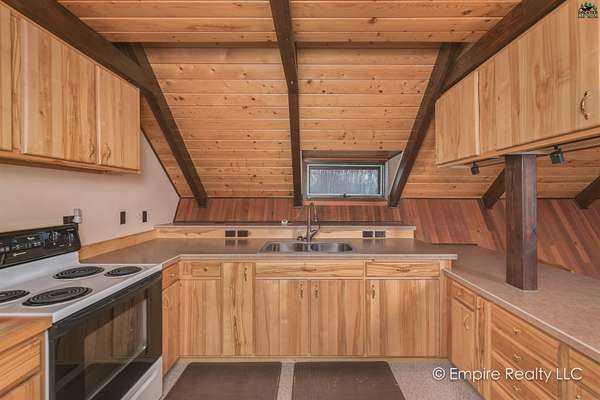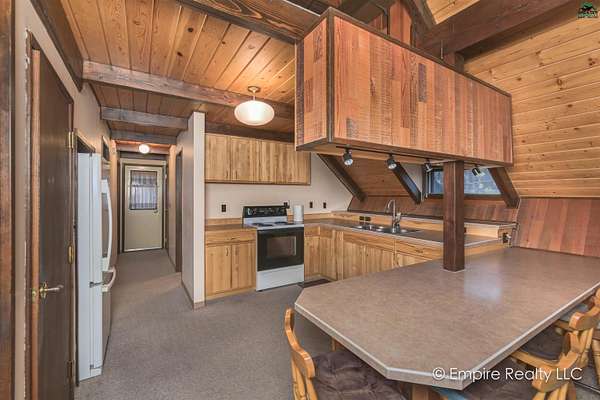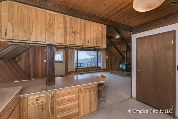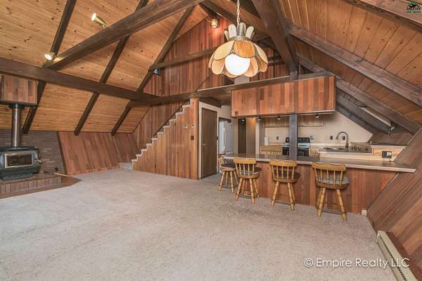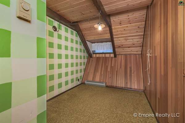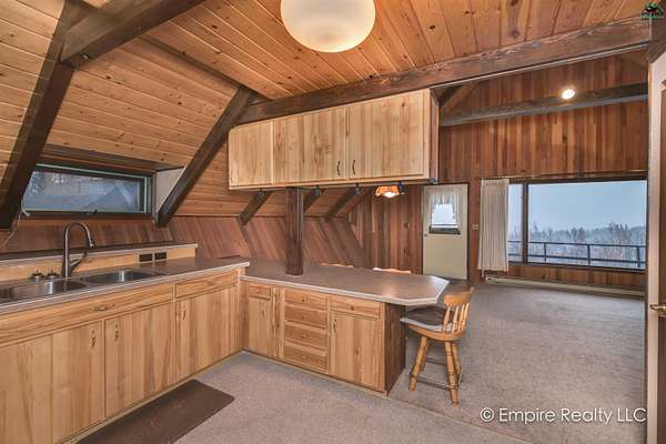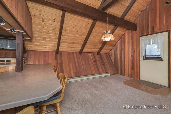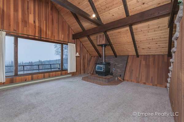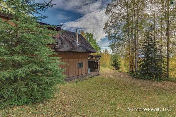 Charming hillside chalet tucked away on Chena Ridge with a view of the river and mountains beyond. Single owner home on an absolutely beautiful lot surrounded by trees and hardly a neighbor in sight. Most of the original rustic details are still visible, from the cedar shake roof to the beams and tongue and groove vaulted ceiling inside. On the ground floor, modifications were made a few years ago with the addition of a kitchenette and bathroom to have a stand alone MIL apartment and because the utilities are on that level, including the washer and dryer, there's really no need to ever go upstairs! But go upstairs you must to fully appreciate the view, the southern facing deck, the vaulted ceiling, woodstove and remodeled kitchen. There are two small bedrooms and a full bathroom on the same second story. From there a set of stairs leads up to the upper primary bedroom with en suite. Flexbility is the name of the game here, the house has electric heat originally and the owner burned a fair share of wood to supplement, or burned a fair share of wood for the heat and supplemented with electricity depending on how you want to approach it, and with the addition of the Toyo heater downstairs you can decide how much oil, electricity and wood you would like to burn and in what proportion. The detached garage is also similarly heated with a wood stove and a Toyo and has done plenty of time as a wood shop when not filled with cars. Above the garage is a massive amount of dry storage and, quite frankly, there is a massive amount of dry storage below the garage, too.