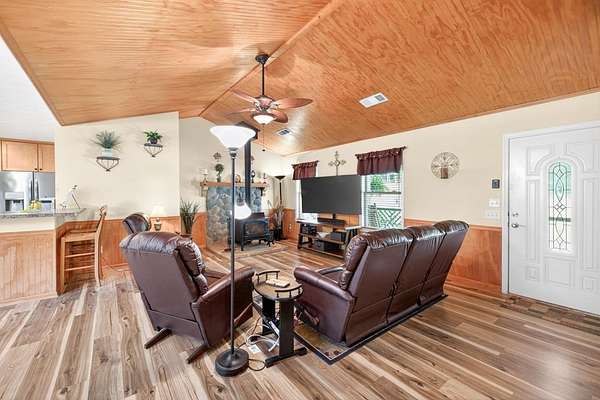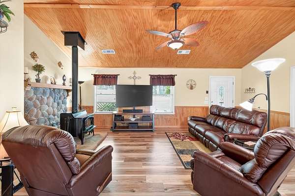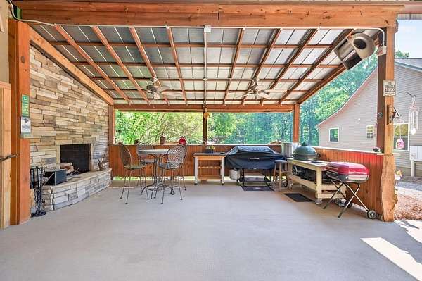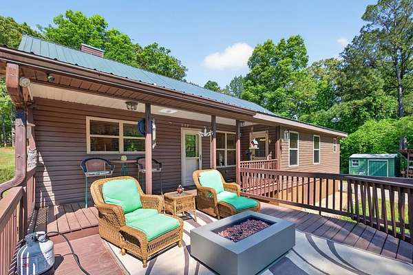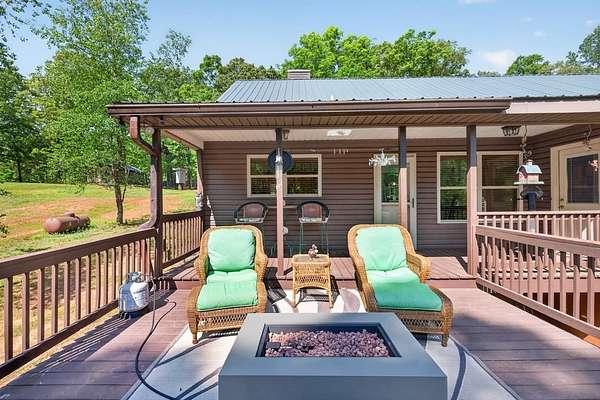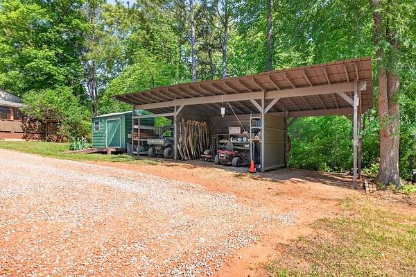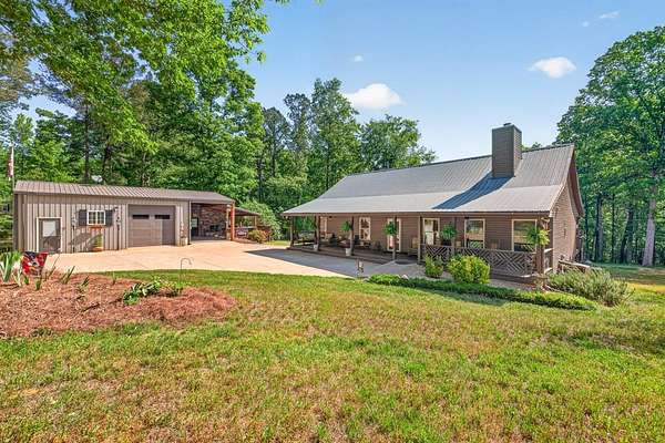 6.04-acre property in sought-after Morgan County, just minutes from Lake Oconee and a short drive to downtown Madison. 3 bed, 2.5 bath home with hardwood floors, wood-burning stove, whole-house water filtration system, and encapsulated crawlspace. The large back deck with hot tub overlooks the property, offering a peaceful setting to relax or entertain. Additional features include a "red iron" building/shop with single-car garage, 1 bed 1 bath studio apartment, carport, storage shed, and tractor shed. Private power-gated entrance with remotes and keypad access. The land offers great potential for hunting with a peaceful creek that runs through the back of the property. Neighboring 5.38-acre lot at 1280 Perryman Rd is also available, featuring an approx. 800 sq ft building stubbed for electricity. Combined total of 11.42 acres offers excellent potential for added privacy, expansion, or multi-generational living.