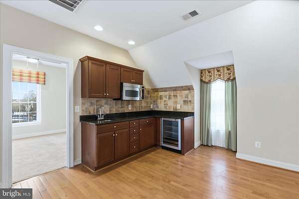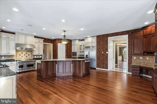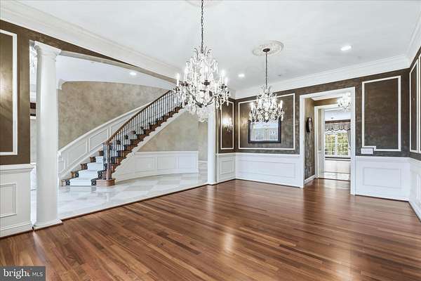 Welcome to your new home. A distinguished Stone-front former model estate on an idyllic 2+ acre corner lot in one of Potomac's most coveted neighborhoods. This extraordinary residence blends timeless elegance with thoughtful design, offering expansive space for both everyday living and grand entertaining. Step inside to a dramatic curved staircase and gleaming marble floors that set the tone for the refined finishes throughout. To your left, a library with rich cherry wood built-ins provides the perfect study or retreat. Sunlight pours into the tucked-away sunroom with wall-to-wall windows and a cozy fireplace, creating a bright yet intimate space to relax. Flow into the magnificent double-story family room, where towering windows fill the space with natural light. The heart of the home is the chef's dream kitchen; featuring top-of-the-line appliances, a dual-level granite island, abundant counter space, a walk-in pantry, and a built-in coffee bar. Adjacent is a window-lined breakfast room overlooking the private patio, ideal for casual mornings and summer gatherings. For added convenience, a secondary full service kitchen sits discreetly behind the main space. Beyond the main level, discover a versatile au pair or in-law suite above the garage with a bedroom, walk-in closet, full bath, living/dining room, and an efficiency kitchen; perfect for guests or multigenerational living. A truly unique bonus is a separate suite with a private entrance, office, and high ceilings, offering flexibility for work-from-home or guest accommodations. Upstairs, five generous bedrooms each include full en-suite bathrooms and walk-in closets, showcasing custom finishes throughout. The owner's suite is a private sanctuary featuring a cozy sitting area with fireplace, dual walk-in closets with built in closet systems, and a spa-like bath. Step out to the rear-facing covered terrace.. a serene spot to unwind and overlook lush, private views. The finished lower level expands your living space with another kitchen, a full bedroom, bonus room with indoor sauna, large open recreation area, and a temperature-controlled wine cellar. A professional media room ensures unforgettable movie nights, and ample unfinished storage adds practicality. Ready to make this dream yours?