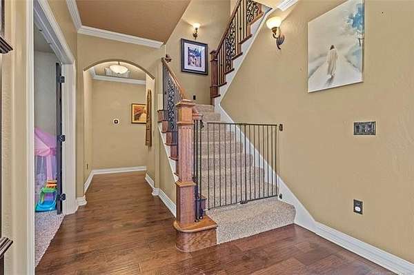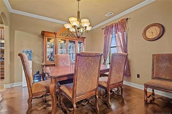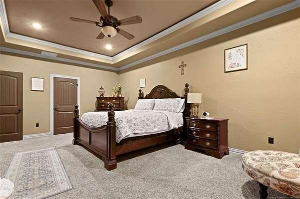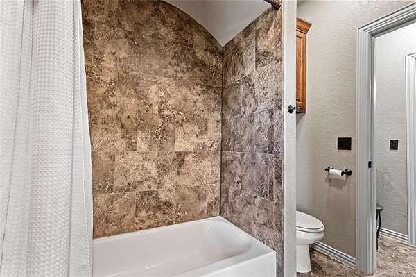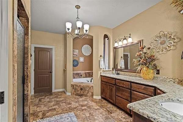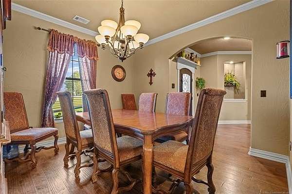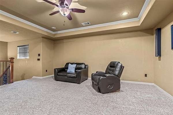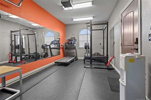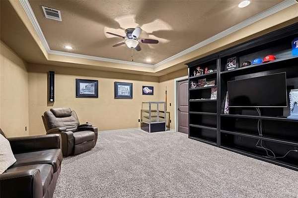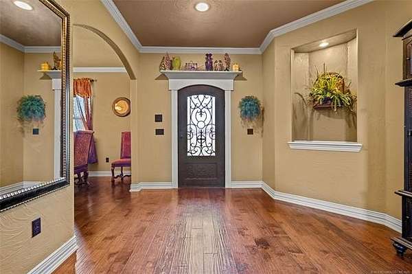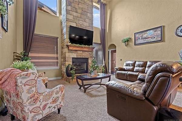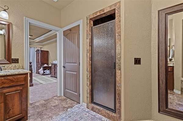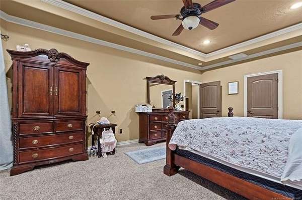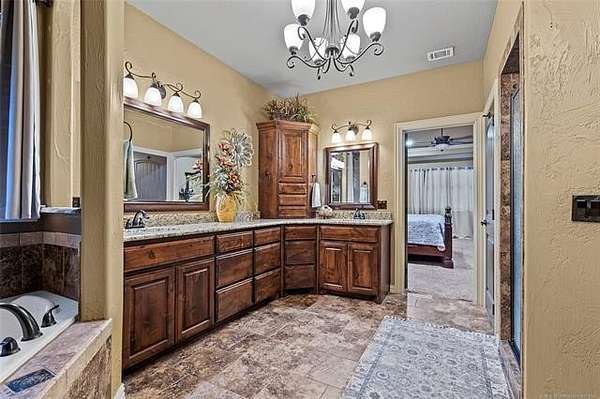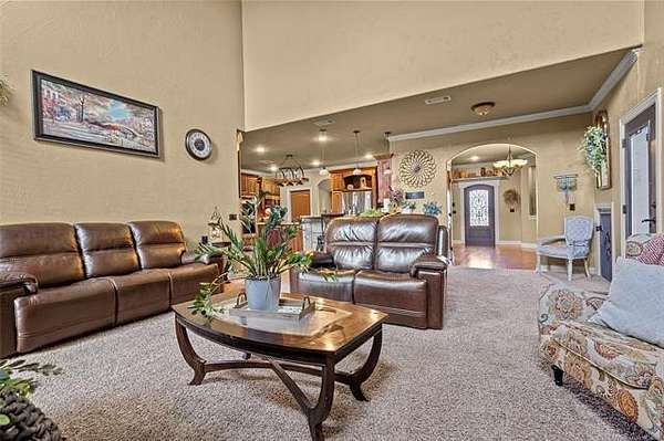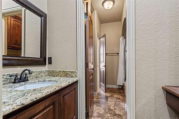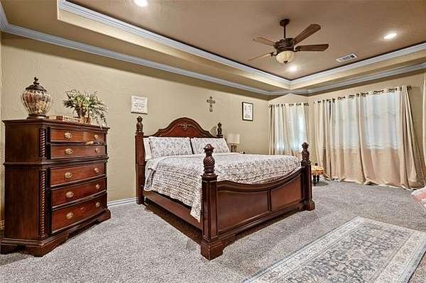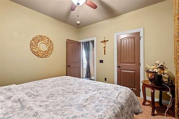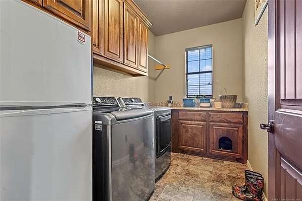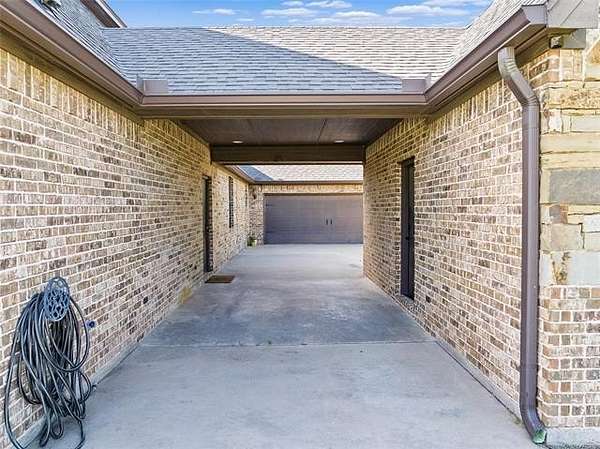 The magnificent home with stone and brick combination exterior, varied roof lines, and inset areas make this home unique and set apart from the rest and it sits on a 2.3-acre lot. Walk into a beautiful entry with insets for decor in the walls and hardwood flooring. Then enter into a large living area with high ceilings and a massive stone fireplace and lots of space. All this opens to a great kitchen with beautiful wood cabinets, granite counters, center island with cook top, double ovens, eat-in kitchen bar with stone facade, and a full wall pantry with 4 doors. Several arched doorways make the space unique. Off the kitchen is a large utility room extra cabinets and granite counter tops with enough space for an extra freezer and refrigerator. The outstanding master suite has spacious closet space including nice built-in units; the long dressing area has double sinks, wall mirrors, and beautiful cabinetry for storage. Also, the bath has a jetted tub and large tile shower. The downstairs is completed with another bedroom, guest bath and an office with a closet. Off the living area is a large, covered patio and beyond that is an outdoor kitchen that is the envy of everyone with a massive stone fireplace, tiled floor, extensive area for seating/party area, with long serving bar, refrigerator, ice maker, grill and gas burner all of these are built-in with lots of storage space. It is lighted and wired with speakers and a nice country view as well. You will have to see this for yourself! The upstairs area has a large living area, two nice sized bedrooms and a full bath. This large home has it all for a family and is not in any city limits. If you are looking for a beautiful home in a nice area, then this one is for you. It is all about location and this one is great. It is so close to Interstate 35 and only 85 miles to Dallas/Fort Worth area and only 95 miles to Oklahoma City. Lake Murray and Lake Texoma are just a few miles away for fun recreation and boating.