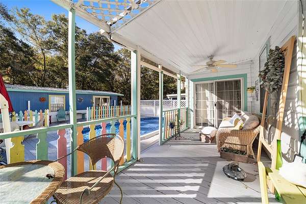 Discover a rare combination of income potential, natural beauty, and peaceful living with this unique and turn-key four-acre property, zoned for horses and perfectly positioned between Ocala and Dunnellon. Just moments from the crystal-clear Rainbow River, you'll have easy access to kayaking, canoeing, swimming, and tubing. Even more exceptional, the back of the property borders the Cross Florida Greenway and the Pruitt Trailhead, giving you coveted, direct access to miles of horseback-riding and hiking trails, an amenity few properties can offer. The main home provides comfortable everyday living with two bedrooms, two and a half baths, laundry facilities, and an updated AC system in 2021. Multiple back porches, including a screened porch, BBQ area, and a dedicated pool porch, create inviting spaces to relax, entertain, and enjoy tranquil views of the pool and surrounding landscape. A divided pasture with new fencing and upgraded electrical in the workshop and cottages adds to the appeal of this property. Two additional residences add tremendous versatility. The primary guesthouse offers a studio-style layout with one bedroom, one bath, and a kitchenette, all with direct access to the pool deck. A second rental cottage, affectionately known as The Back Porch, features a separate bedroom and living room along with a charming porch overlooking the scenic Greenway. These spaces are ideal for rental income, multigenerational living, or hosting guests in complete comfort. If you prefer to keep the property all to yourself, it easily transforms into a private retreat. Picture quiet mornings on the expansive rocking-chair front porch, taking in serene views of the Greenway and the surrounding natural beauty. The location is exceptional, offering quick access to the World Equestrian Center, the SR 200 corridor, and an array of recreational areas, state parks, and waterways, including Lake Rosseau, the Gulf of Mexico, and the Withlacoochee River. Whether you're seeking a profitable investment, an equestrian-friendly homestead, or a peaceful sanctuary surrounded by nature, this property delivers a lifestyle filled with comfort, beauty, and endless possibilities.