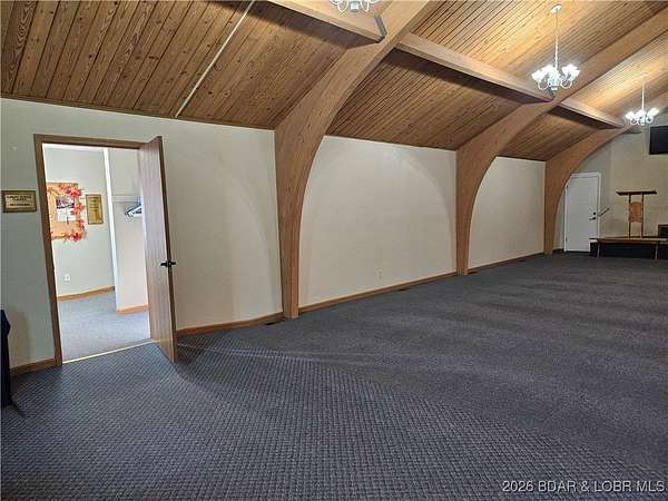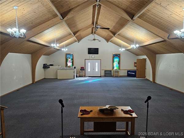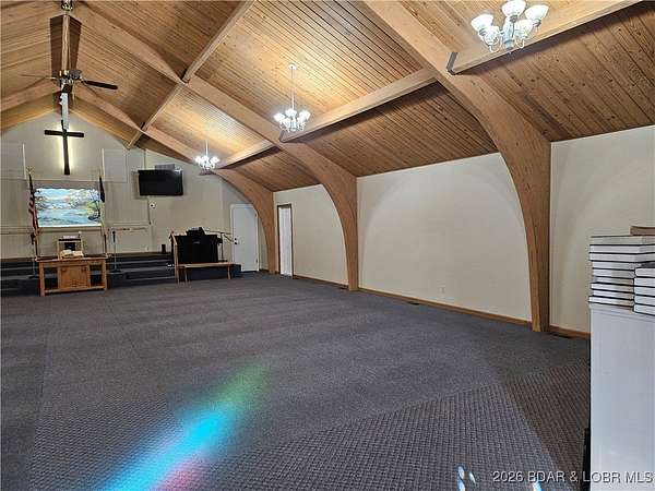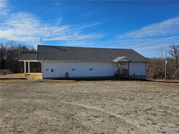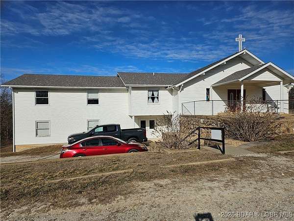 Bring your imagination, wishes and dreams and transform this 7,556 sq. ft. building into anything you want! Could be a home or apartment building, or a retail shop. This property is not in the Camden County Planning and Zoning so no restrictions. Building was formerly a church with a large sanctuary on the upper level along with 5 rooms used as classrooms in the educational wing attached. There are also 4 half baths on the upper level. Lower level has a huge dining hall with a full kitchen, 4 rooms and 1 office with 1 full bath and 2 half baths. Plenty of storage in the closet under the steps. With a total of 6.8 acres +/- of outdoor space, there's room to build any additional buildings you may need. Easy access to Hwy 7 with Warsaw to the north and Camdenton to the south for shopping. Come take a look!