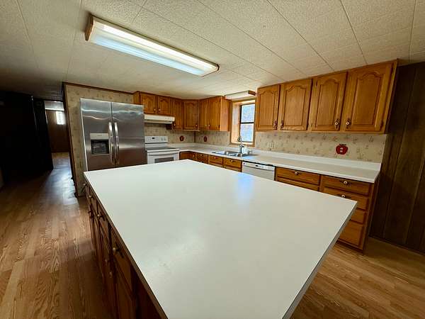 The acreage is well-suited for hobby farming, homesteading, or recreational use and includes an asphalt driveway for smooth access, a large pole barn for equipment or livestock, a greenhouse for gardening enthusiasts, a well house, and an attached garage that can serve as parking, storage, or workshop space.
