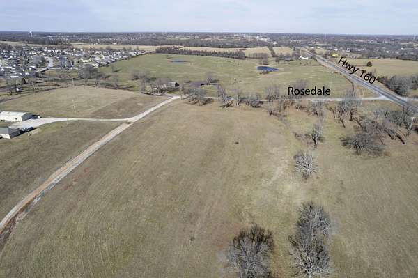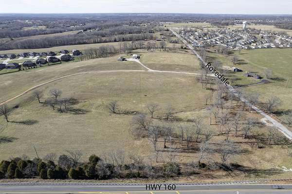 Est $5,782/moInvestment opportunity parcels. 35.1 apx acres located between Springfield & Branson. High traffic location, cornering Hwy 160 & Rosedale, south Nixa. City utilities at the property. Preliminarily plated with the City of Nixa for a Kelby Creek development, a high end subdivision with walking paths, clubhouse & pool. Plats and maps available. The property has a 1700 sq ft residence and 1900 sq ft barn. The residence has been modified for offices. It was once used as a model home for the Kelby Creek Development. Plats and PUD for Kelby Creek attached to the listing information. Call today for more details!