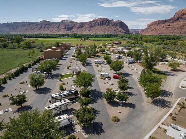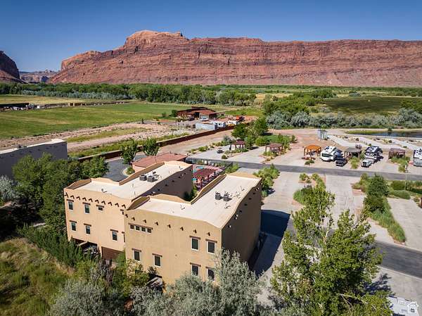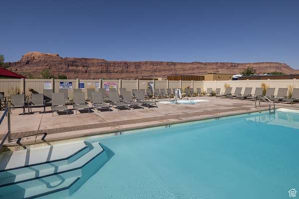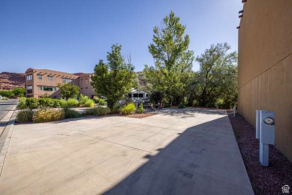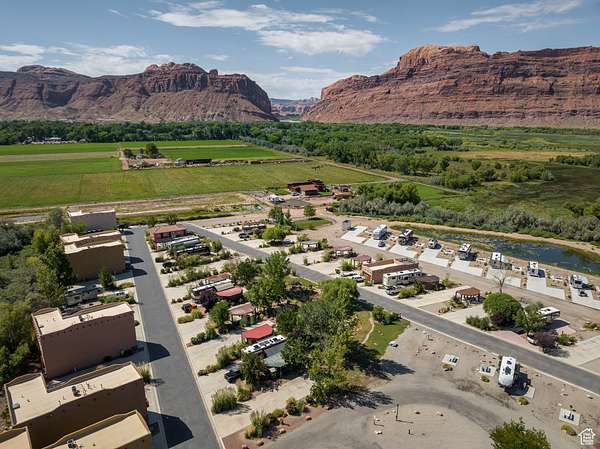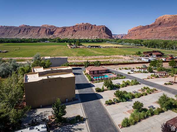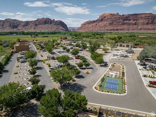 BUILDABLE LOT IN VILLAGE CAMP RESORT - Discover an incredible opportunity to secure a poolside haven for your motorcoach in a stunning resort setting! This RV pad not only has delightful landscaping and comprehensive hookups but also parking for your "toad" vehicle. The resort offers exceptional amenities designed for your enjoyment and relaxation: Dive into one of the beautiful pools for a leisurely swim or lounge poolside under the sun; Enjoy a friendly match or practice your serve at the Pickleball Court; Stay active with state-of-the-art exercise equipment at the Fitness Center; Entertain younger guests at the playground. When you're not basking in the beauty of your Moab getaway, this parcel can be an investment to you as a nightly rental through Village Camp Resort Management. Additionally, the lot is buildable, providing you with the option to construct your own Casita, adding a personal touch to your vacation retreat. Embrace this unique chance to own a piece of paradise in a premier, picturesque location!