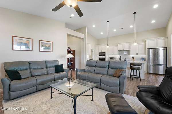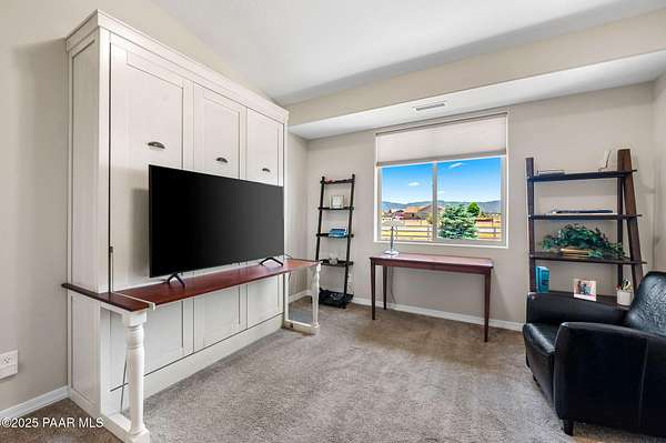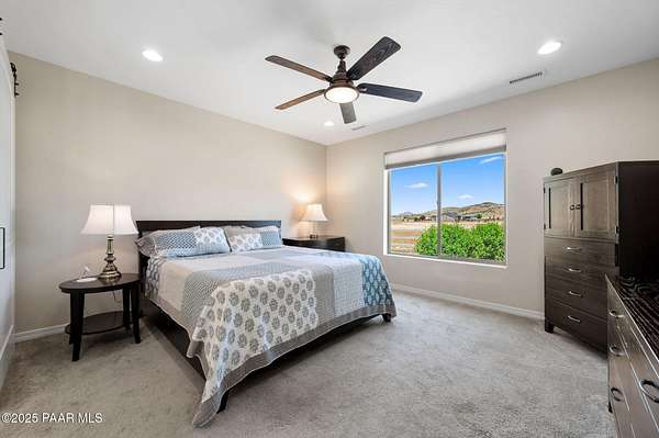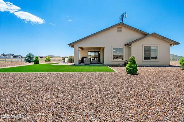 HUGE Price Improvement! This Legendary Builders custom home, better than new, sits on over 2 acres with breathtaking Mingus Mountain views. The open-concept split floor plan features vaulted ceilings and an abundance of natural light. The gourmet kitchen is a chef's dream, with JennAir appliances, leathered granite countertops, and rich cabinetry, perfect for entertaining. High-end finishes throughout the home add elegance and charm. The 3-car garage is equipped with LiftMaster trackless openers. 12 GPM well so less to worry about with long-term water. With a fully paved road direct to your garage, and space for additional outbuildings or a shop, this property offers both luxury and flexibility in a highly desirable neighborhood of Saddle View surrounded by State Land, your launchpad for outdoor recreation!