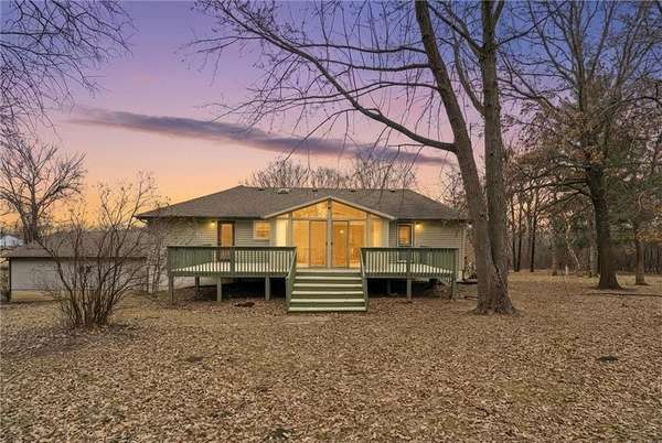 Welcome to your country oasis complete with a 1,300 sq ft workshop perfect for your hobbies or business! This beautiful property offers the perfect blend of peaceful rural living and modern convenience, all just minutes from the Kansas City metro area. Nestled on nearly 2 picturesque acres, the home is set back from the paved country road creating a serene and private setting. Inside, the home features hardwood floors throughout the main level, a solid foundation, and a functional layout with laundry conveniently located on the same floor as the bedrooms. The three-season sunroom overlooks a newly resurfaced deck and a private, treed backyard-perfect for relaxing year-round and enjoying the peaceful surroundings. Major systems have been well maintained, with newer windows, plenty of life left in the roof and heating/cooling system, and the added benefit of lower utility costs through water and electric co-ops. With quick access to Highway 50, commuting to Kansas City, Lee's Summit, Warrensburg, or Whiteman AFB is easy and convenient. This home truly offers the best of both worlds-country charm with city conveniences just a short drive away!
