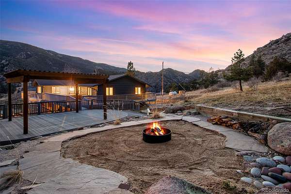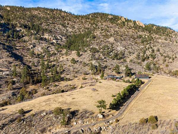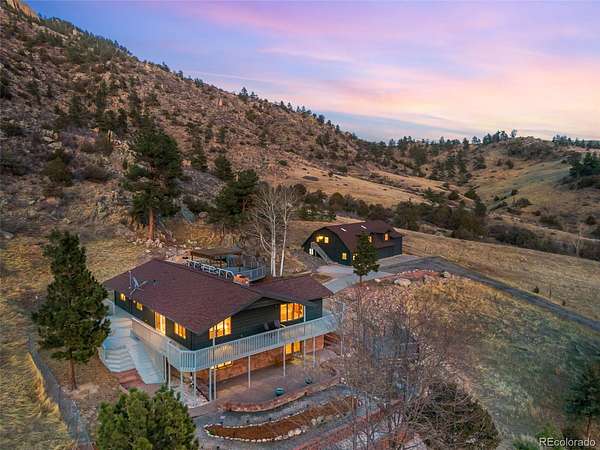 Location Location Location. Nestled in the foothills of the Rocky Mountains near Loveland & Fort Collins, frequently voted among the best places to live & retire, this stunning property offers 35 acres of open land, no HOA, no Metro Tax, & breathtaking mountain views just 20 minutes to Estes Park & 25 minutes to Rocky Mountain National Park. Enjoy nature or Hunt on your own land. Stroll down to fish, hike, climb or bike out your front door. CUSTOM HOME W/ 2,160 SQ FT RV GARAGE/SHOP W/ 1,393 SQ FT FINISHED LOFT & 644 SQ FT ATTACHED GARAGE. Enter a spacious foyer w/ hardwood floors, colonial doors, new trim, double pane windows, fresh paint, updated electric & plumbing, & new light fixtures. The family room w/ moss rock electric fireplace & can lights captures incredible views while the remodeled kitchen features quartz countertops, large center island, breakfast bar, pantry, abundant cabinets, & stainless steel appliances. Large dining area flows to the primary suite w/ private bath, quartz countertops, floor-to-ceiling tile shower, & full-length walk-in closet. Bedrooms 2 & 3 offer cedar-lined closets, remodeled guest bath, & central staircase w/ iron railing leads to the lower level. The lower level includes a wood-burning fireplace, bedroom 4 for office or gym, laundry, & remodeled 3/4 bath. Mechanical highlights include Starlink internet, owned solar, backup generator w/ propane tank, well & reserve tank, Steffes energy efficient heat, water softener & filtration, 50-gallon water heater. 2-car attached garage plus 8-car detached heated garage w/ office, storage, & loft ready to finish. Outdoor amenities include rock outcroppings, wildlife, fenced area, pergola, patios, wrap-around deck, wood-burning firepit & hot tub. Property borders National Forest with private access. Call today for a full list of features, floor plan, or to schedule your private tour!