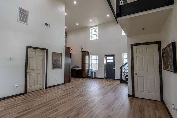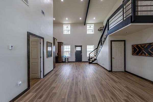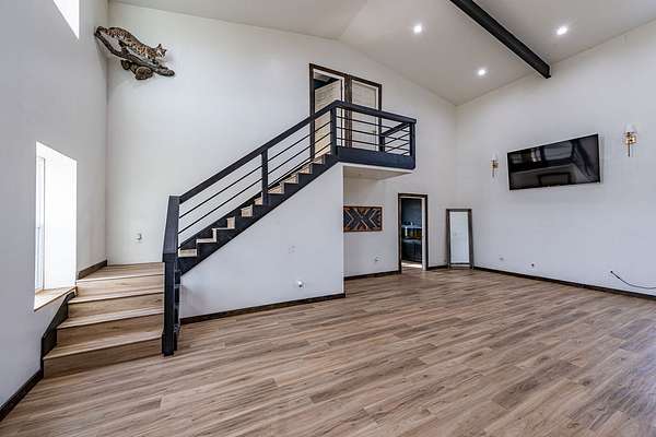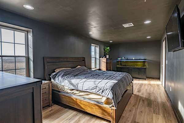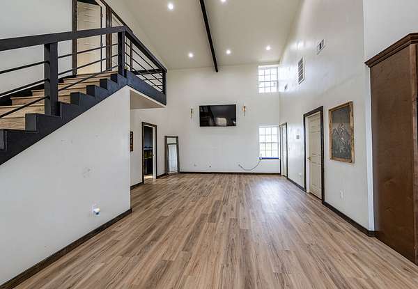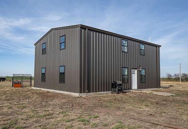 Set on an expansive 56 acres, this unique 3-bedroom, 1-bath barndominium offers the perfect blend of rustic charm and modern comfort. Designed for both functionality and open-concept living, the home features a spacious interior with high ceilings, durable finishes, and plenty of natural light throughout.