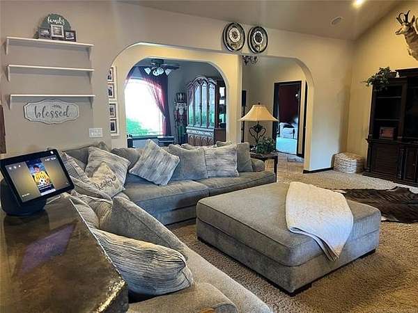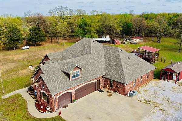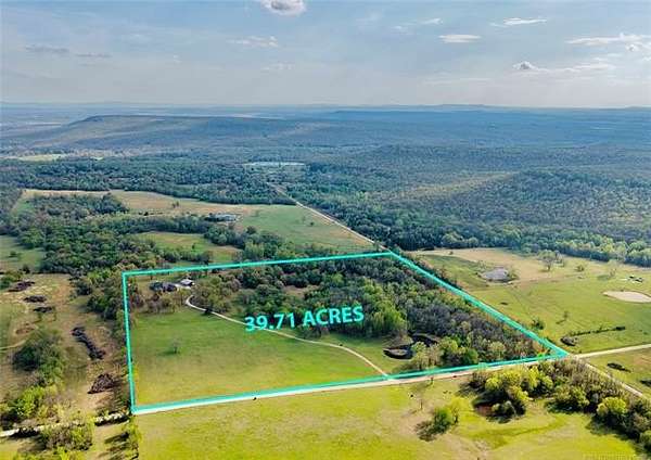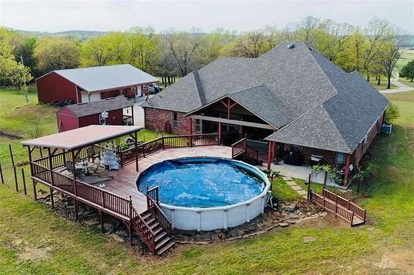 CUSTOM BUILT COUNTRY HOME JUST SOUTH OF WEBBERS FALLS. 4 Bedrooms, 3.5 baths, Large Bonus room upstairs and 3 bonus rooms downstairs. This property boasts a 3 car attached garage sitting on 40 acres. Located close by is Lake Tenkiller, the Illinois River, and Greenleaf State Park. The property features a stocked pond (bass & bluegill), a creek running through the land, abundant wildlife, and mature trees including fruit and nut varieties. Enjoy outdoor living with a custom back patio, outdoor kitchen, fire pit, rock garden with fish pond, and a pool with expansive deck (pool needs liner/pump) and seller has a new liner ready to be installed by buyer. Improvements include a 30x50 insulated shop with electric and concrete floors, art shed with electric, covered dog kennel, chicken coop, and horse/cow pen. Numerous updates: new roof (2025), 80-gal commercial grade hot water tank (2025), HVAC additions including mini split (2024), new appliances, attic electrical updates, septic serviced (2025), and hardwired security cameras. This property has so much to offer too numerous to mention. Call today and check our for yourself all this property has to 0ffer!!!