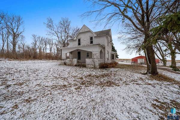 Bring your vision and your horses to this expansive 6.67-acre acreage located uniquely on the Minnesota/South Dakota border. While this property boasts a convenient Garretson, SD address , it is legally situated in Rock County, MN, offering the best of both worlds with easy access right off the blacktop. The property features mature trees, and a substantial outbuilding ready for your equestrian needs, complete with 4 horse stalls, a tack room, and a hay loft. The site is also fenced for horses. The existing 1925 two-story farmhouse offers 4 bedrooms and 2 bathrooms but is in need of significant restoration or could serve as the site for a new build. This property is being sold as-is, offering a blank slate for those looking to build equity or create their dream hobby farm