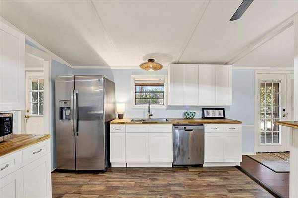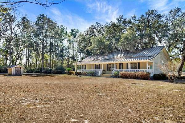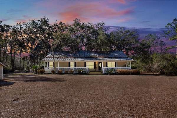 Tucked away on 3 private acres between Shellman Bluff and Pine Harbor, this secluded 3-bedroom, 2 bath home offers coastal living surrounded by nature. A long-gated driveway leads you to this quiet retreat where peace and privacy take center stage. Expansive front and back porches invite you to relax and take in the surroundings, with the back porch overlooking the scenic marsh area and tidal creek, perfect for enjoying local wildlife and amazing sunsets. The home features an open layout where living and dining areas are open to the kitchen with breakfast bar, new cabinetry, durable butcher block countertops and stainless-steel appliances. Primary suite features double vanity, separate shower and soaking tub. The exterior has been upgraded with Hardie Board siding and metal roof, giving the home a sturdy, low maintenance traditional look. Located just minutes from boating, fishing, and waterfront dining, this property offers a rare opportunity for those seeking acreage, privacy, and marsh front in a desirable coastal location.