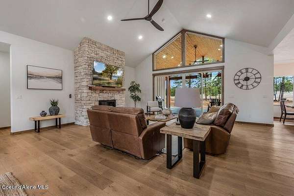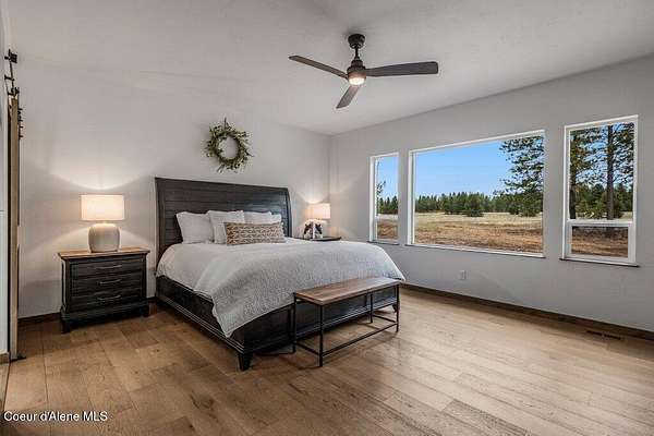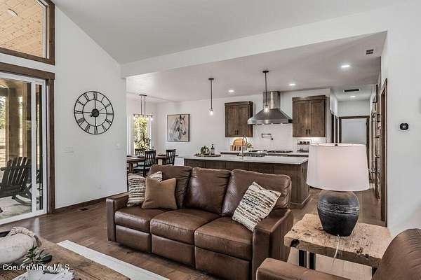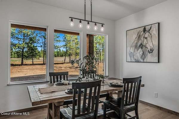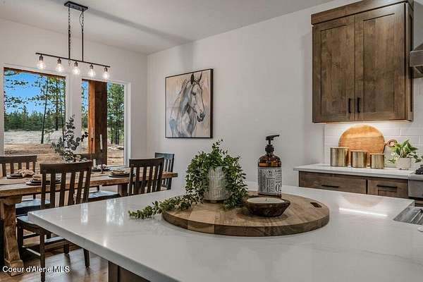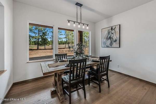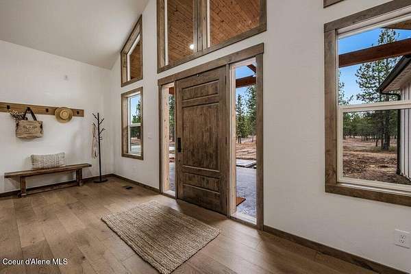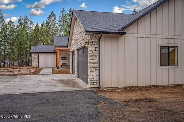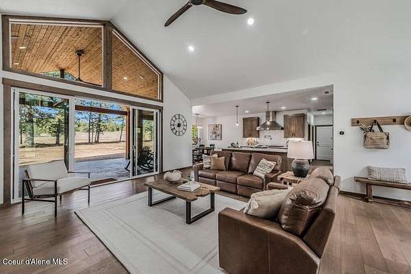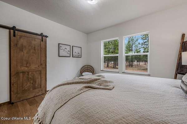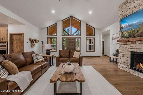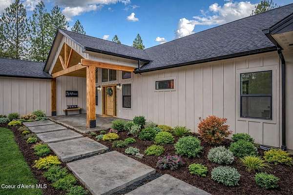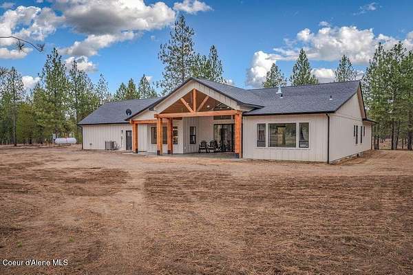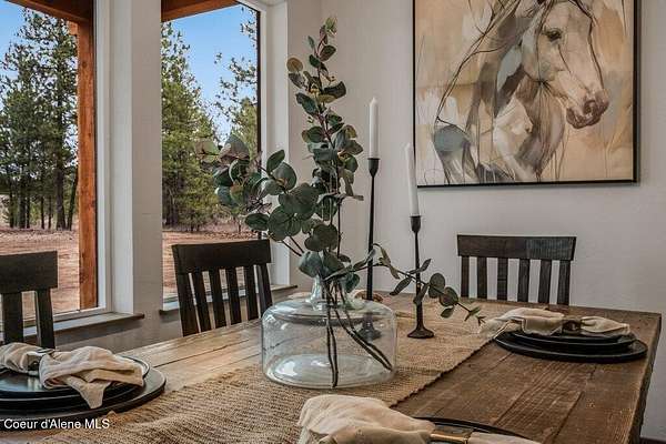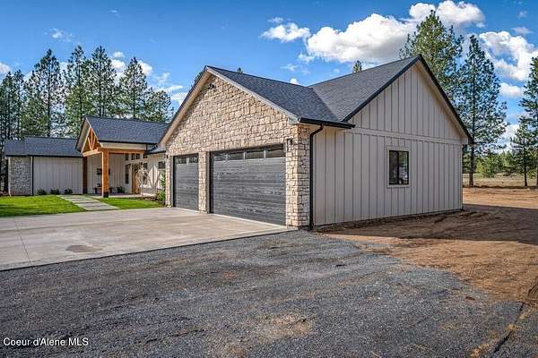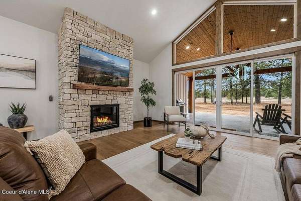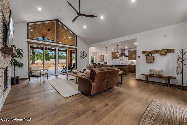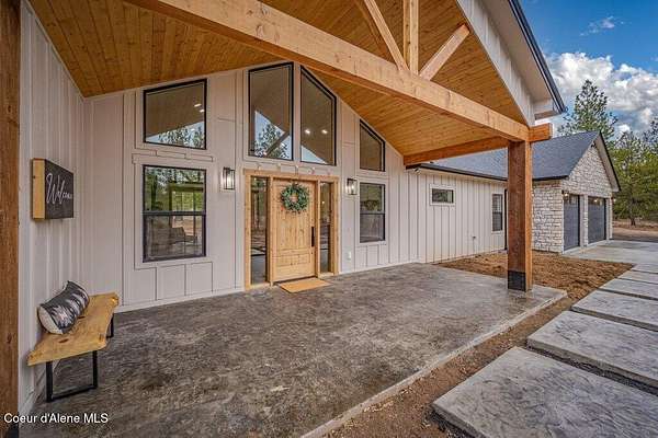 Custom Modern Rustic Luxury Home on 10 Acres | Timber Valley Estates This 2,444 sq ft, 3 bed, 2.5 bath home offers refined Northwest living with timbered architecture and a grand front entry. The great room features a dramatic center vault, expansive windows overlooking a pastoral setting, and a floor-to-ceiling stone gas fireplace. The chef's kitchen is designed for entertaining with custom cabinetry, a large island, walk-in pantry, and professional 48' Thor cooktop. Two guest bedrooms share a Jack-and-Jill bathroom, while the private primary suite features vaulted ceilings and a spa-inspired bath with custom cabinetry and radiant heated floors. Ten acres provide privacy, open space, and room for a shop, animals, and outdoor living in the sought-after Timber Valley Estates community.