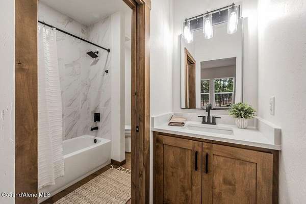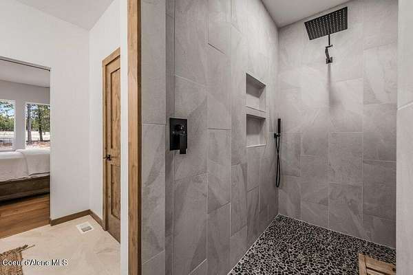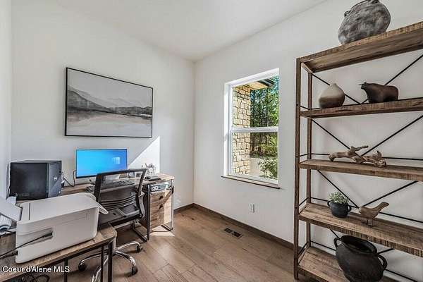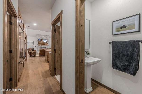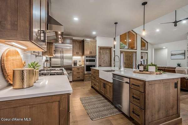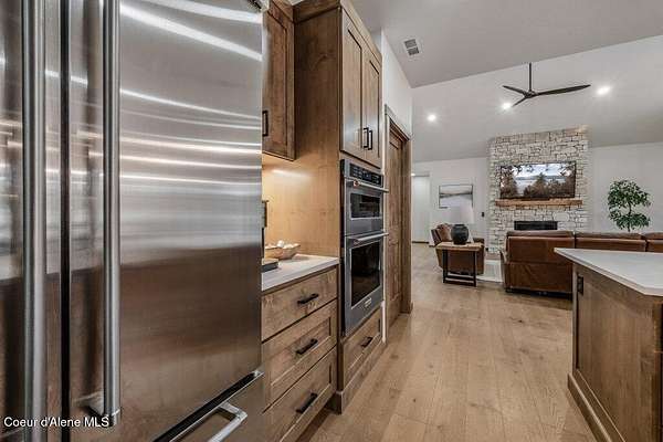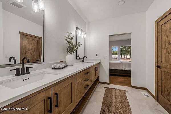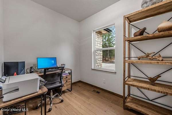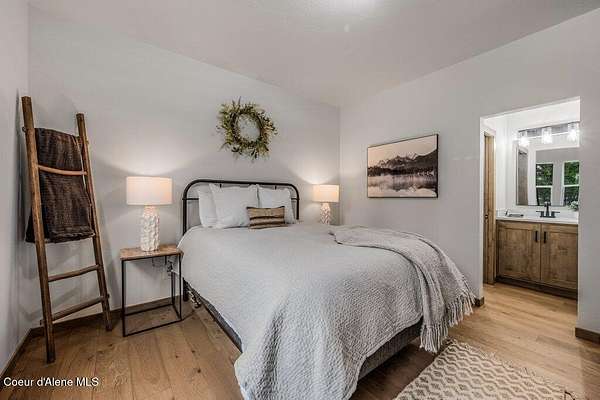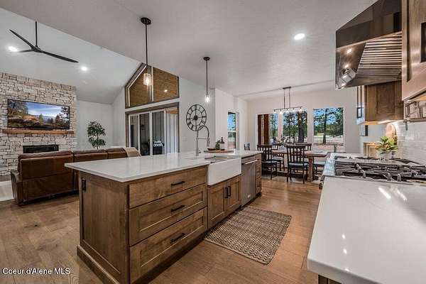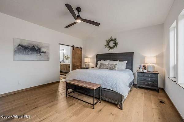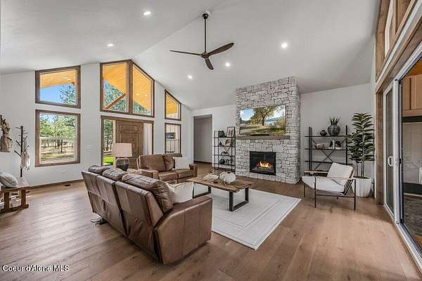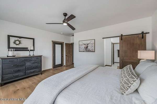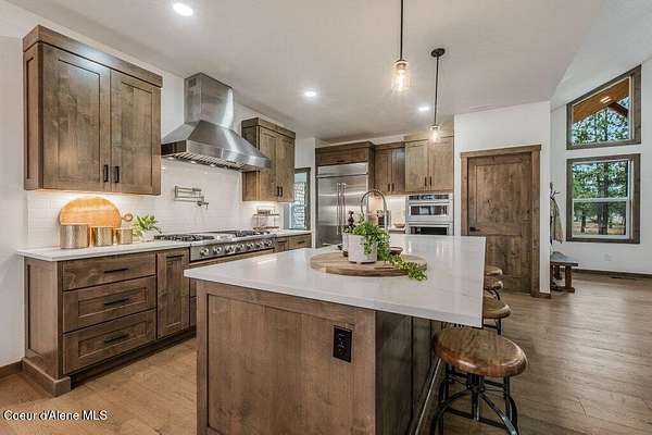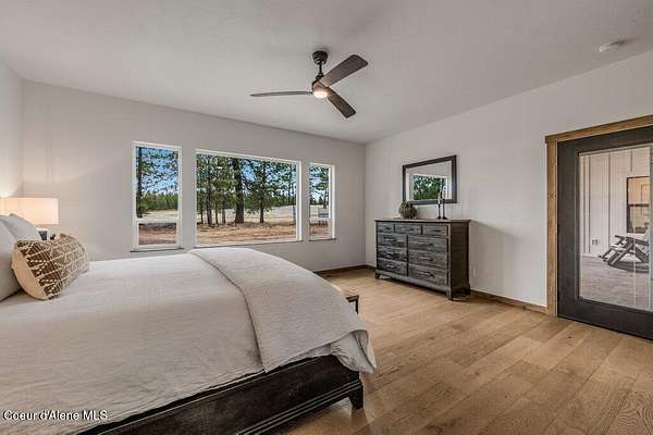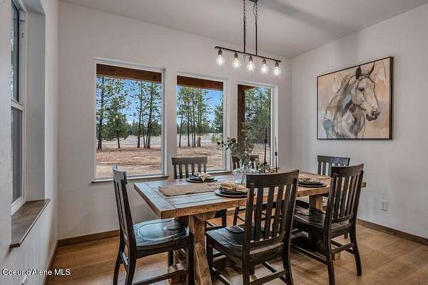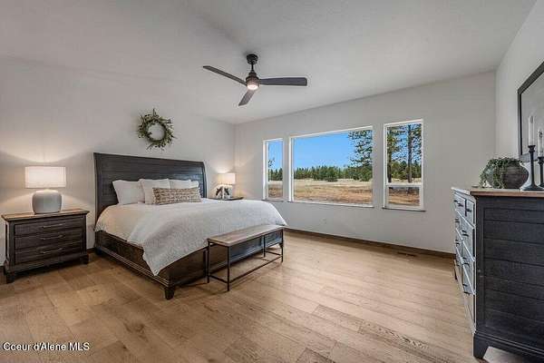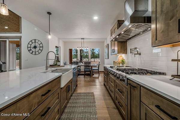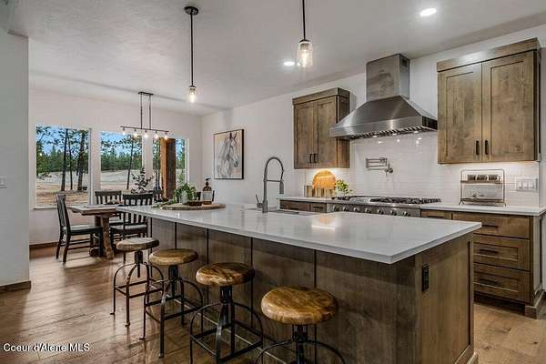 Custom Modern Rustic Luxury Home on 10 Acres | Timber Valley Estates This 2,444 sq ft, 3 bed, 2.5 bath home offers refined Northwest living with timbered architecture and a grand front entry. The great room features a dramatic center vault, expansive windows overlooking a pastoral setting, and a floor-to-ceiling stone gas fireplace. The chef's kitchen is designed for entertaining with custom cabinetry, a large island, walk-in pantry, and professional 48' Thor cooktop. Two guest bedrooms share a Jack-and-Jill bathroom, while the private primary suite features vaulted ceilings and a spa-inspired bath with custom cabinetry and radiant heated floors. Ten acres provide privacy, open space, and room for a shop, animals, and outdoor living in the sought-after Timber Valley Estates community.