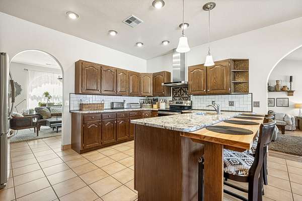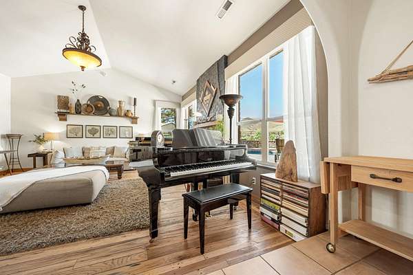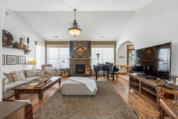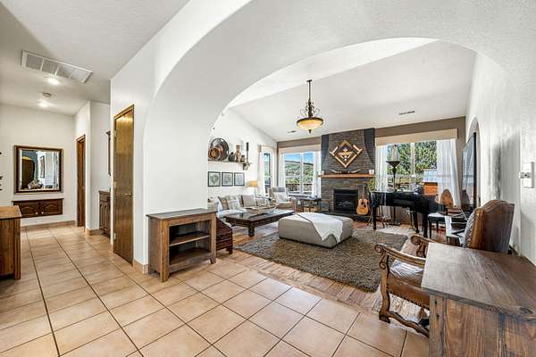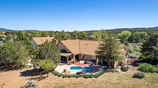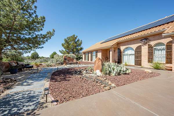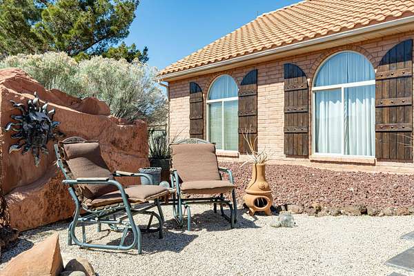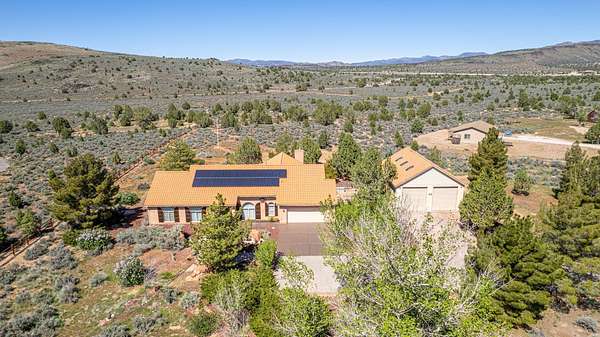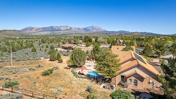 Experience this beautifully-appointed Dammeron Valley home, offering highly-coveted privacy, space, and breathtaking Pine Valley and Veyo Volcano views while backdrops of brilliant purples, oranges, reds, yellows, and blues paint the skies at sunset that settle into dark sky-friendly, star-lit nights. Inside, warm wood finishes highlight a welcoming great room with large arched entries, fireplace and an open, functional kitchen featuring abundant cabinetry, generous counter space, and bar seating. The spacious primary suite includes a cozy fireplace and spa-like bath for relaxing. Step outside to your private backyard with a pool, expansive patio, pergola seating with cozy firelight ambience and open views - perfect for enjoying quiet evenings or hosting. This property includes a detached shop/double RV garage, a self-contained garden area, and solar panels for energy conservation, plus abundant fruit trees throughout the yard. Enjoy access to community gardens, horse trails, hiking, and fishing at nearby Sand Cove Reservoir - all just minutes from the charming Bold & Delaney Community Winery. Served by the prestigious Dammeron Valley Fire Department, this home offers a rare blend of comfort, recreation, and scenic beauty nestled on 2.41 acres with no HOA. Residents pay $550/year for the Prestigious Fire Department. Already paid for 2026 by the seller. This particular street in the community opted out of the HOA.