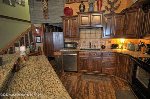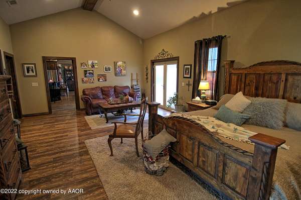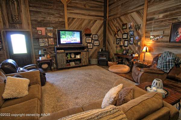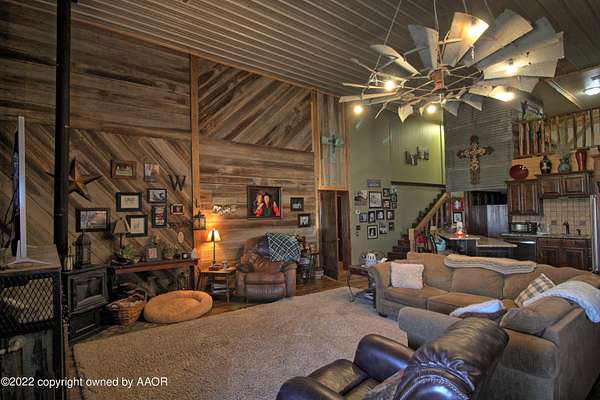 Welcome to this beautifully designed 3-bedroom, 4-bathroom barndominium, nestled on 10 fully fenced acres with pipe fencing,offering the ideal blend of rustic charm, modern convenience, and country freedom. Inside, the home showcases unique wall features that bring warmth and character throughout. The spacious open-concept living room and kitchen is perfect for entertaining and everyday living, complete with granite countertops, stainless steel appliances, and ample cabinetry. The main-level primary suite is a cozy retreat, featuring a stone fireplace, large walk-in closet, and a spa-inspired bathroom with dual vanities, a walk-in shower, soaking tub, and generous cabinet and counter space. Upstairs, the second bedroom is located in the loft area and includes its own 3/4 bathroom. This room also overlooks the main living space, giving it an open, airy feel while maintaining privacy. A dedicated utility room provides additional convenience, offering extensive built-in cabinetry for laundry and storage needs.The home is equipped with a brand-new heating and air system, ensuring energy-efficient, and year-round comfort. Adjacent to the main home, the garage/barn area includes a private mother-in-law suite complete with a bedroom and 1/2 bath, ideal for guests, extended family, or a private workspace. Also on the property is a separate building featuring a tack room or additional storage area, perfect for equipment, tools, or animal care needs. With its functional layout, thoughtful upgrades, and beautiful rustic details, this property offers the perfect setup for country living with modern style and versatility.